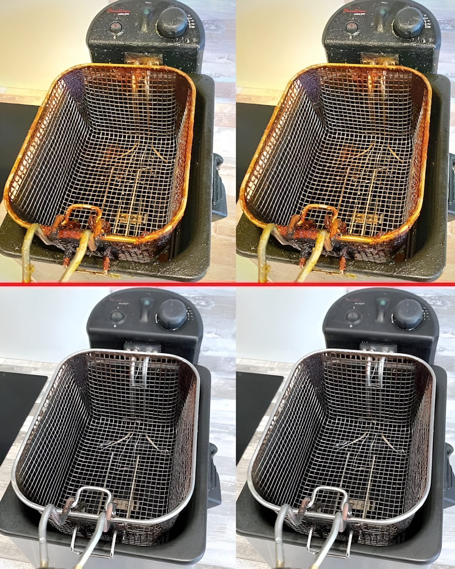 Door je frituurpan te vullen met water tot de normale oliehoogte en een flinke scheut afwasmiddel toe te voegen, kun je na het verhitten van deze mix de meest hardnekkige vetresten aanpakken.