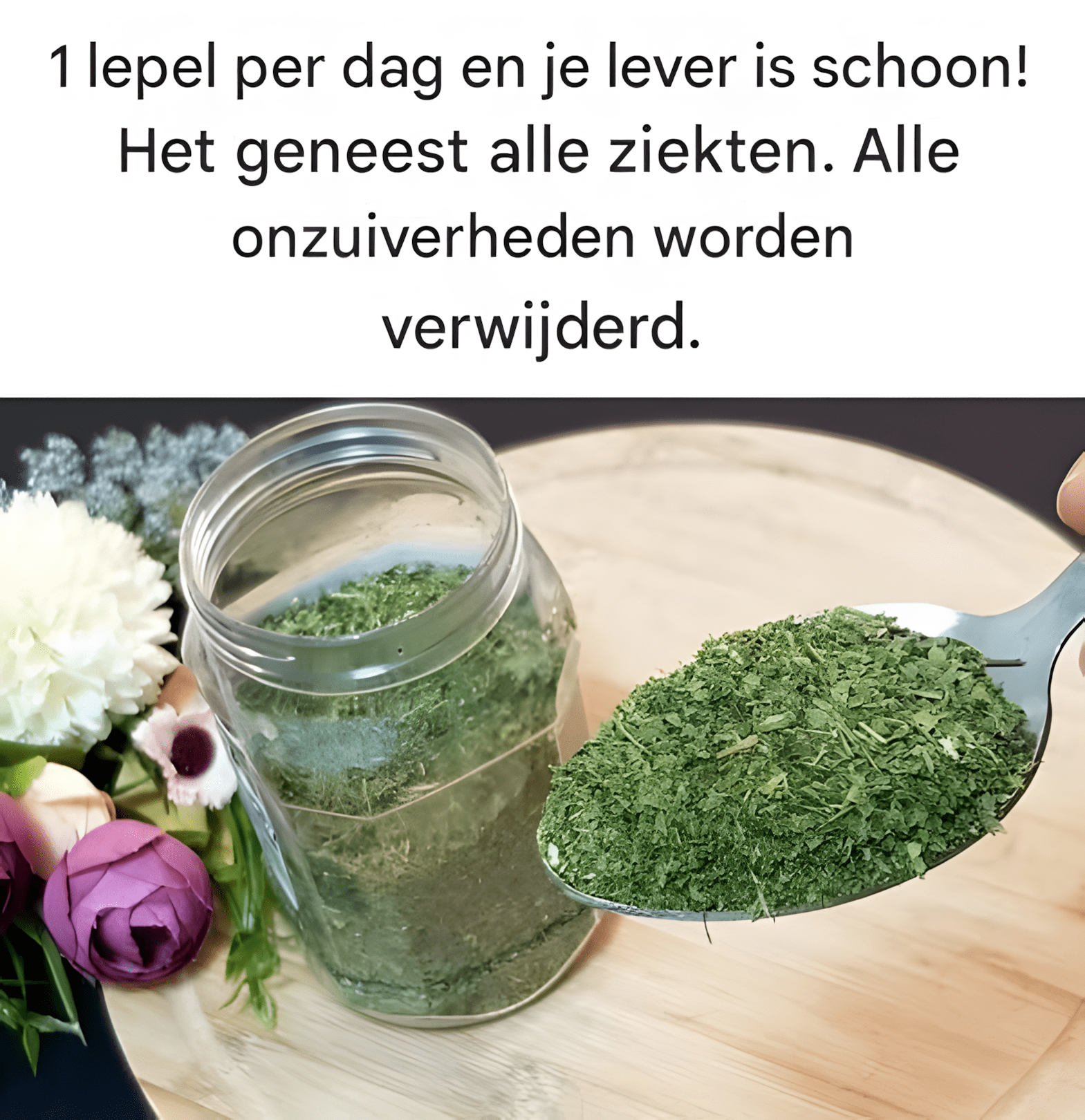 1 lepel per dag en je lever is schoon! Het geneest alle ziekten. Alle onzuiverheden worden verwijderd.