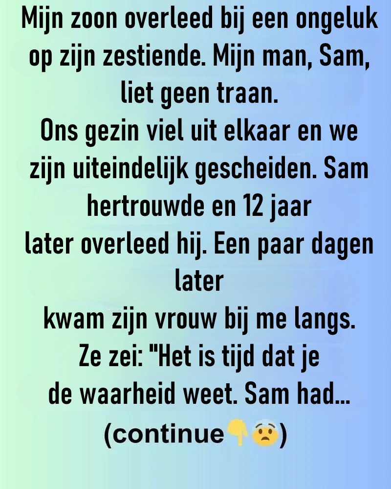 Mijn wereld stortte in op de dag dat we onze zoon verloren – 16 jaar oud, in een oogwenk verdwenen door een vreselijk ongeluk. Maar wat me nog meer raakte dan het verlies, was de reactie van mijn man Sam. Hij huilde niet. Hij schreeuwde niet. Hij… sloot zich gewoon af.