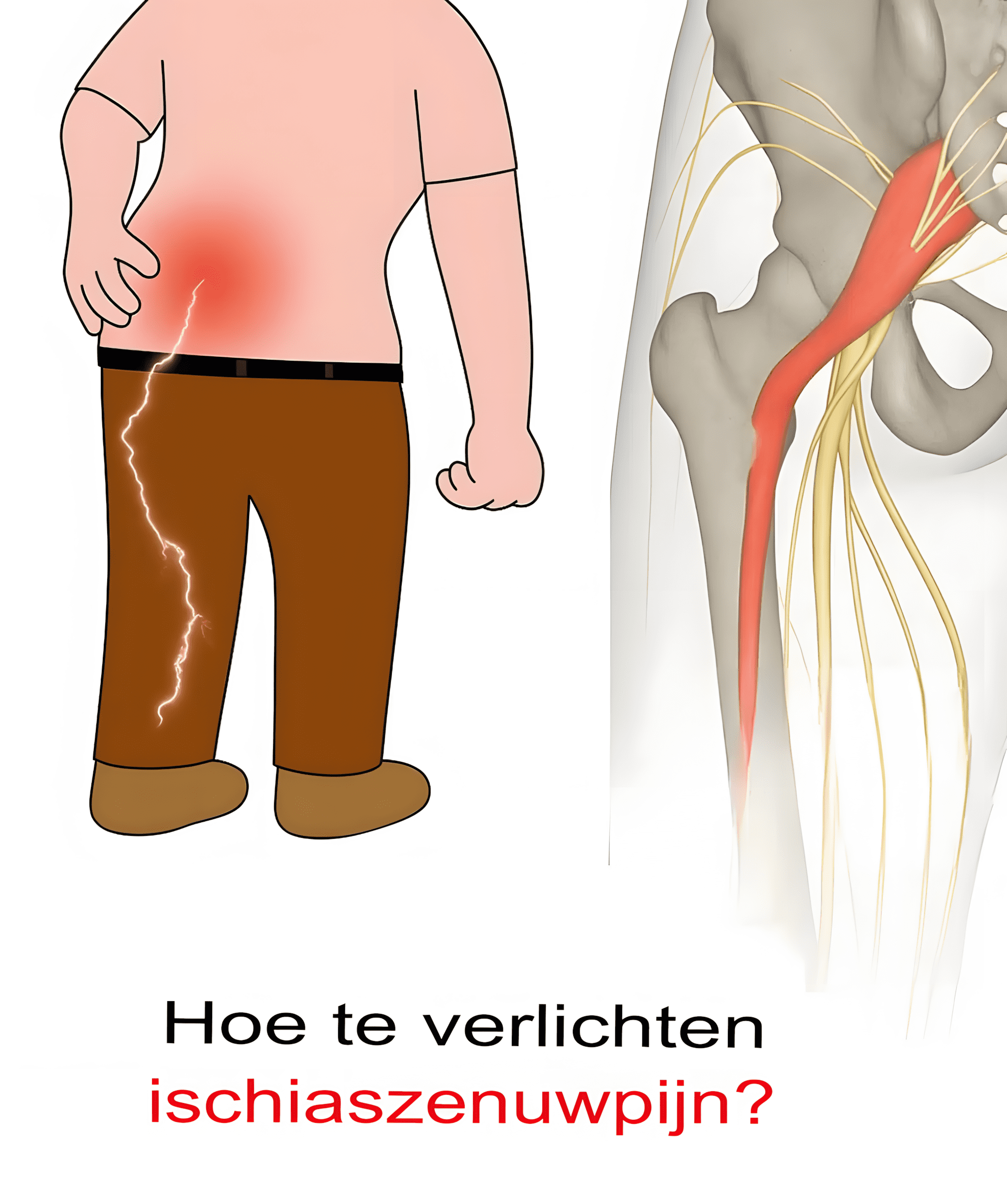Het is een aanhoudende, soms scherpe pijn die begint in de onderrug en doorloopt naar je been. Je denkt misschien dat het een kramp of tijdelijke vermoeidheid is, maar… het kan eigenlijk een irritatie van de ischiaszenuw zijn. Gelukkig zijn er simpele stappen die je kunt nemen om je beter te voelen – en nee, het is niet alleen voor yogaprofessionals!