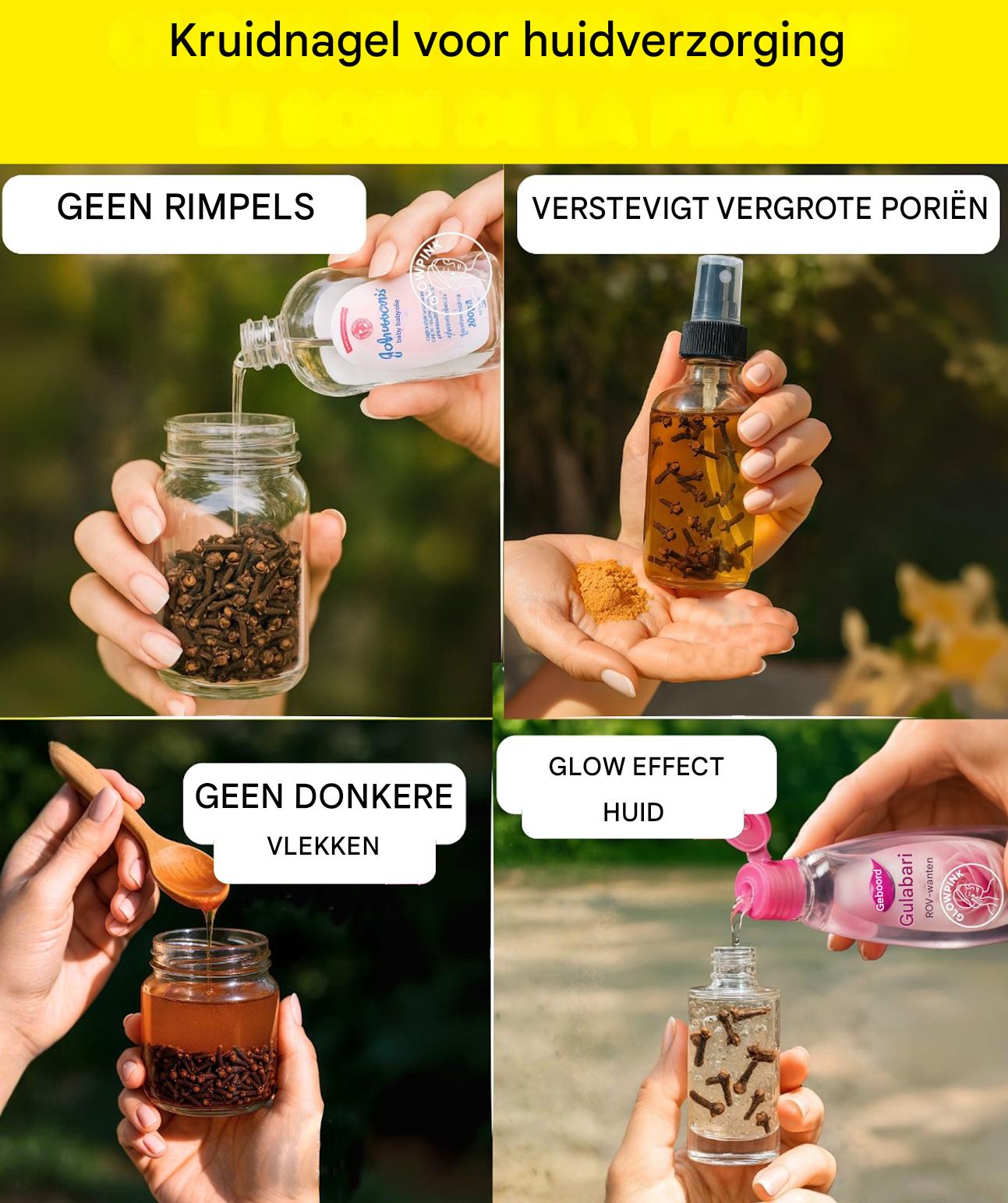 Wat als het geheim van een stralende huid in je kruidenpotje schuilt? Kruidnagels worden vaak naar de keuken verbannen, maar ze bevatten ware schatten voor de huid. Dankzij hun hoge eugenolgehalte kalmeren en zuiveren ze de huid, stimuleren ze de collageenproductie en herstellen ze de glans en soepelheid van het gezicht. Gecombineerd met een paar natuurlijke ingrediënten, vormen ze eenvoudige maar effectieve zelfgemaakte behandelingen. Hier zijn 7 makkelijke recepten voor een stralende teint en een perfect gebalanceerde huid.