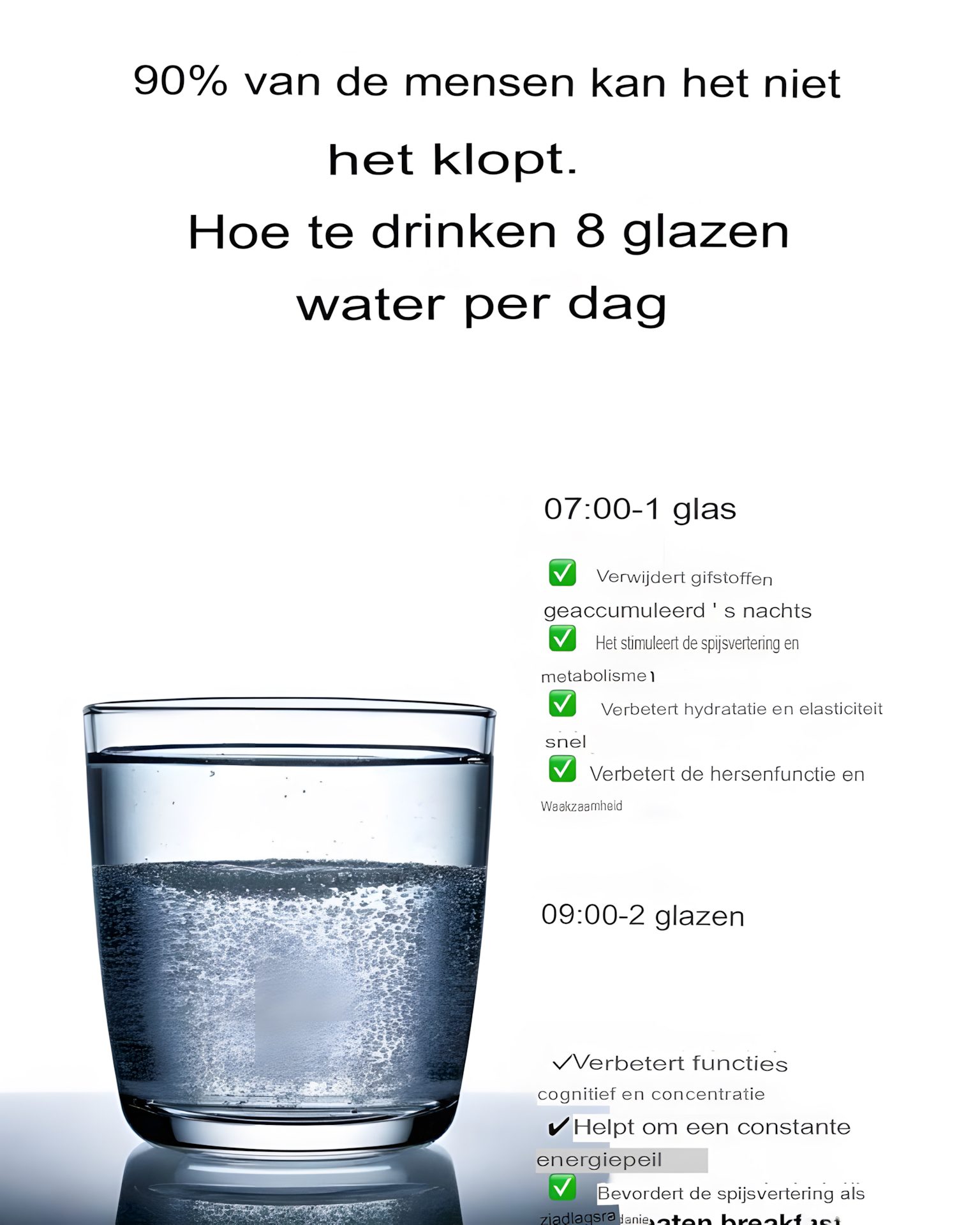 De regel van “8 glazen per dag” is een eenvoudige richtlijn die suggereert dat mensen ongeveer acht glazen water van 240 ml per dag moeten drinken, voor een totaal van ongeveer 2 liter. Deze aanbeveling is gebaseerd op de gemiddelde behoeften van een gezonde volwassene. De individuele behoeften kunnen echter variëren, afhankelijk van factoren zoals leeftijd, geslacht, activiteitsniveau en klimaat. Hoewel deze regel als algemene richtlijn dient, is het belangrijk om naar de signalen van uw lichaam te luisteren en uw inname dienovereenkomstig aan te passen.
