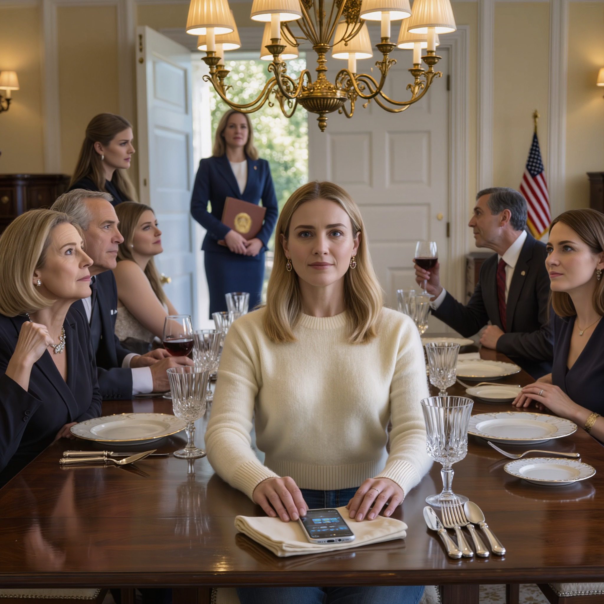 Gekleed in een spijkerbroek en een simpele trui, viel ik tegen te midden van hun gepolijste luxe en zelfvoldane grijns. De kamer voelde zwaar aan, de stilte werd alleen verbroken door het zachte gekletter van bestek. Toen boog mijn moeder zich naar me toe, haar toon scherp genoeg om door de lucht te snijden.