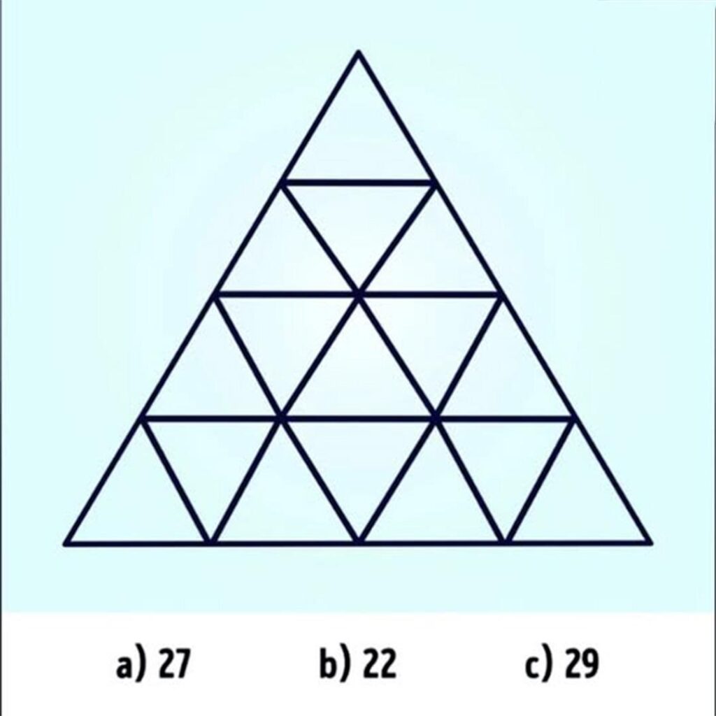 We denken vaak dat logische puzzels alleen zijn weggelegd voor IQ-fanaten… En toch! Achter deze kleine driehoek, die er heel simpel uitziet, schuilt een bijzonder slimme uitdaging die de neuronen van duizenden internetgebruikers stimuleert. Denk je dat je een scherp oog hebt? Pas op, deze visuele test zou je wel eens kunnen verrassen…