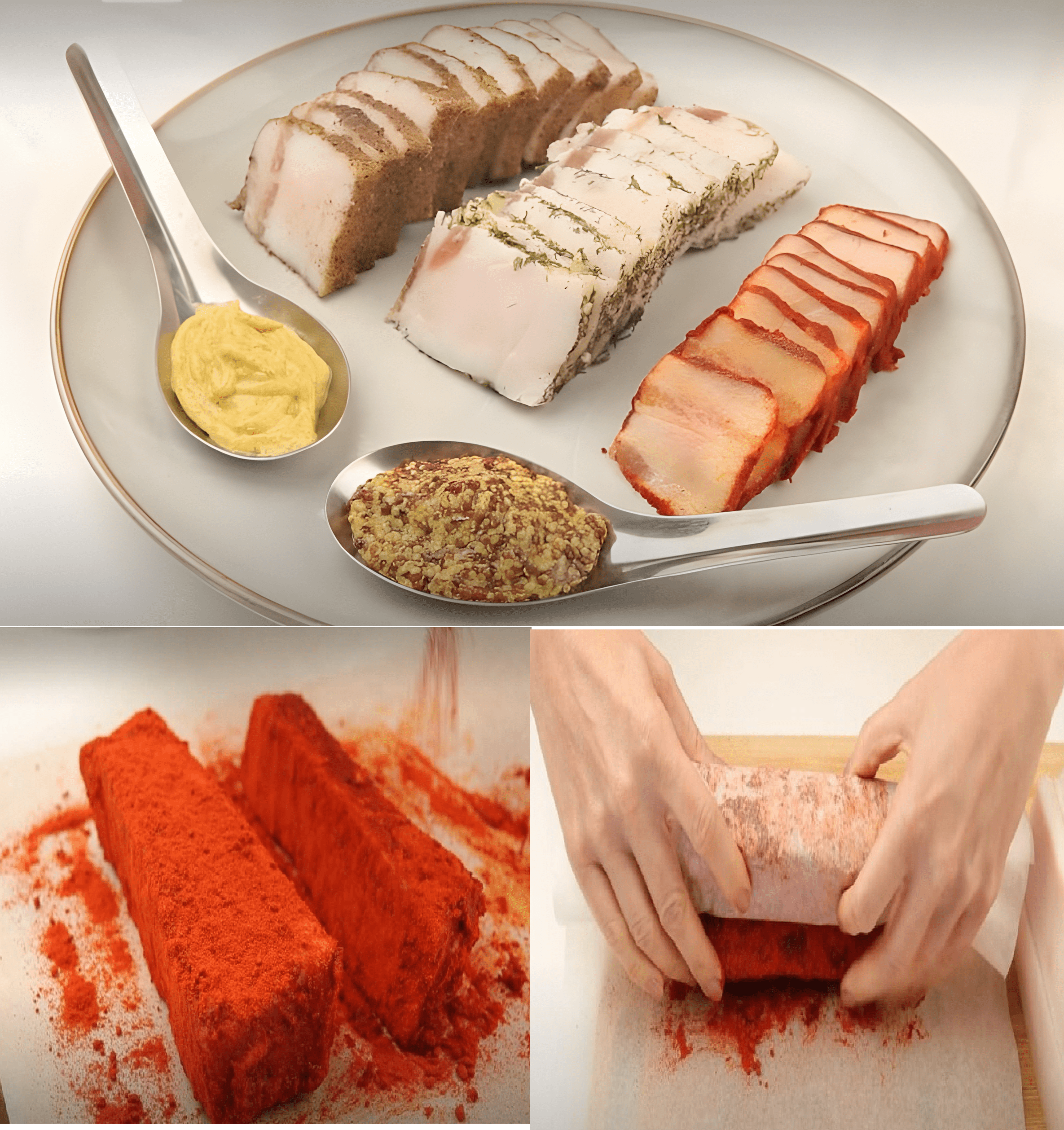 Laat het reuzel 2 dagen in de koelkast liggen onder vershoudfolie. Verwijder vervolgens het zout van de bovenkant van de runderborst en verwijder het vel. Meng paprika in chilivlokken in een kopje.