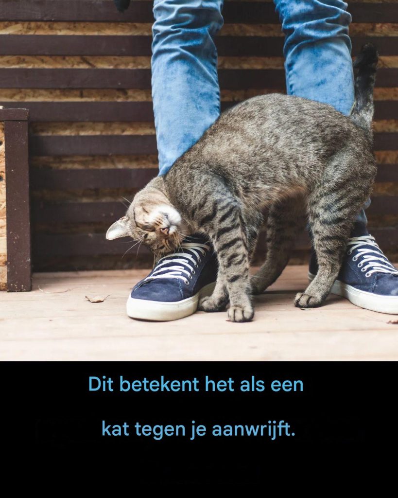 In eerste instantie lijkt het misschien alsof je kat je probeert te laten struikelen of je persoonlijke ruimte binnendringt , maar in werkelijkheid is het een van de meest zachte manieren waarop een kat genegenheid kan tonen. Door tegen je aan te wrijven, zegt je kat: “Ik vind je leuk. Jij hoort bij mijn wereld.”