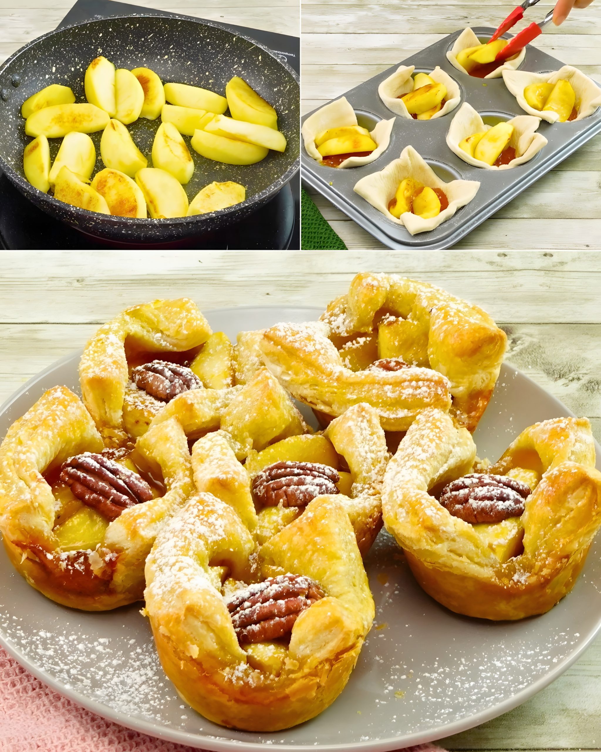 Deze schattige appelgebakjes in bladerdeeg zijn de perfecte combinatie van knapperig bladerdeeg en zoete, zachte appelvulling. Makkelijk te maken en prachtig om te zien, ideaal voor een gezellige high tea, een feestelijke brunch of gewoon als verwennerij bij de koffie! โ˜•๐ŸŽ Een heerlijke herfsttraktatie! ๐Ÿ‚