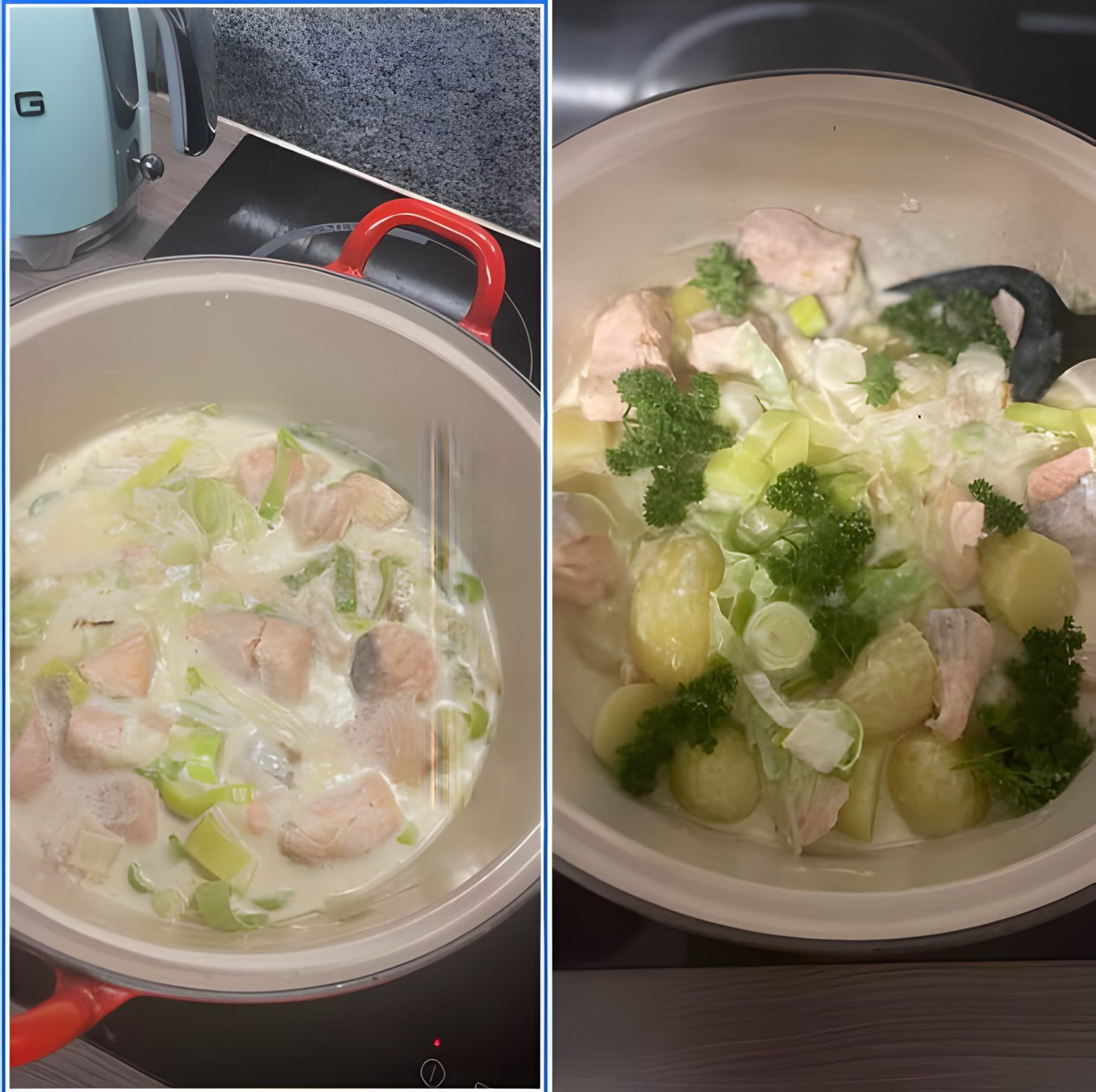 Gisteravond kreeg ik ontzettende zin in een romig prei-zalm gerecht met aardappelen, en het stelde niet teleur! 😍 Dit smeuïge en smaakvolle recept is perfect voor een knusse avond met familie of vrienden. 📌 Aantal personen: 4 | 🕒 Bereidingstijd: 30-35 minuten 🛒 Ingrediënten ✔ 400 g zalmfilet, in blokjes gesneden ✔ 2 grote preien, … Lire plus