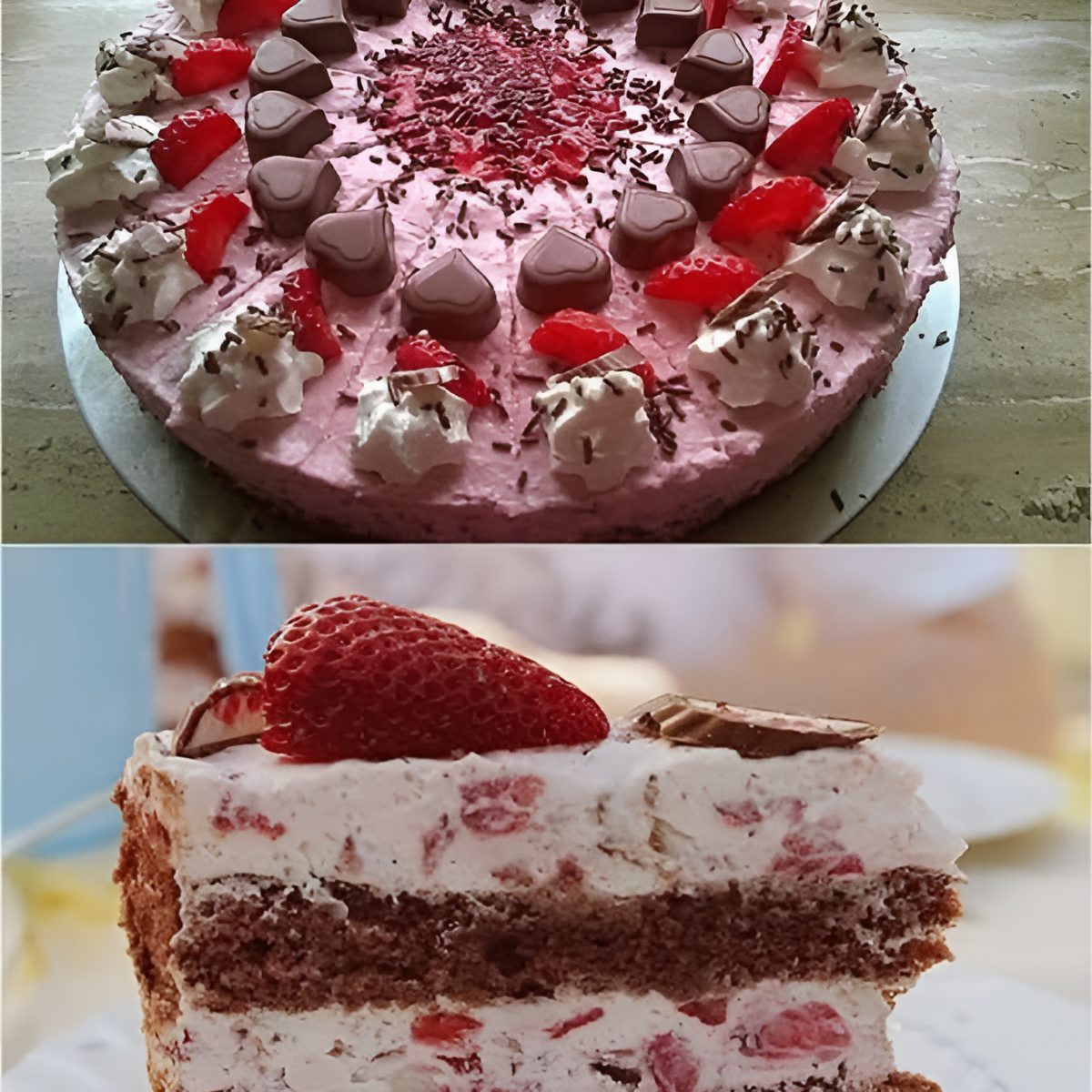 Aardbei-Yogurette-taart met notenbodem 🍓🍫