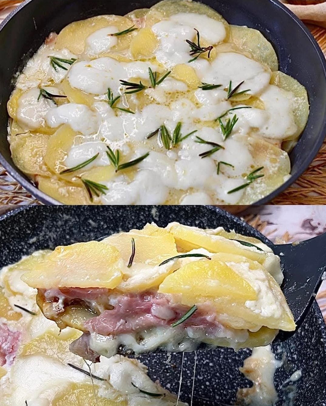 Een heerlijke variant op de klassieke Parmigiana, maar deze keer met aardappelen als hoofdingrediënt. Zonder tomatensaus, gevuld met smeltende mozzarella en zachte ham, is dit gerecht makkelijk te bereiden en perfect voor wie van eenvoudige maar smaakvolle maaltijden houdt. Ingrediënten Voor 4 personen: 4 aardappelen 2 plakken gekookte ham 50 g pizzamozzarella (voor smelten) ½ … Lire plus