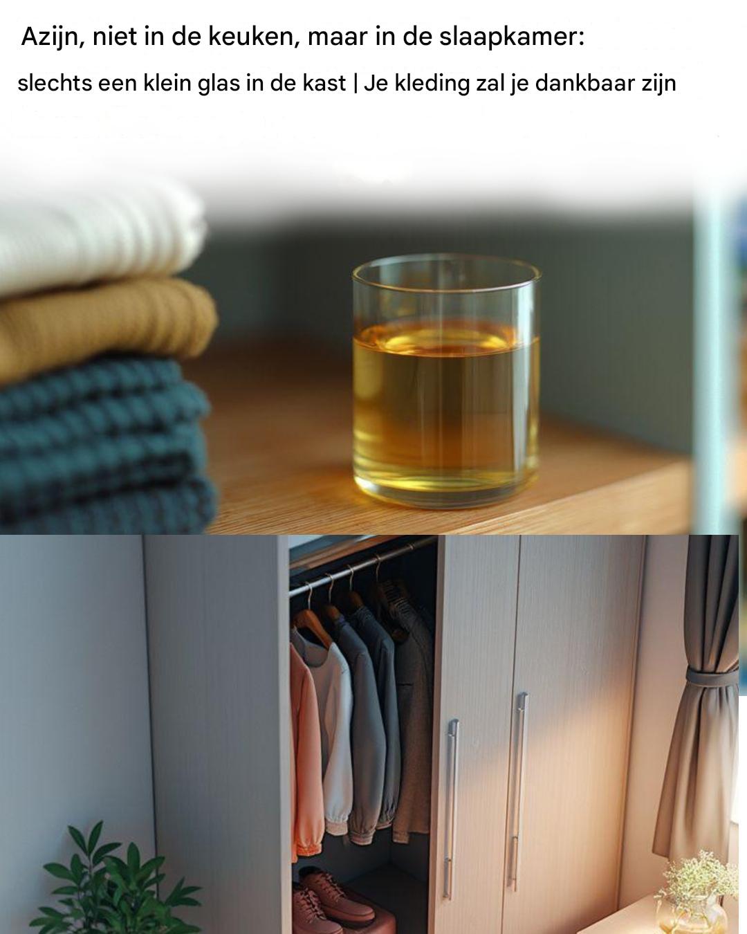 Maar wist u dat azijn een echte ‘game changer’ kan zijn in uw slaapkamer, en vooral in uw kledingkast? Door een klein potje azijn in uw kast te zetten, kunt u een groot aantal voordelen ervaren waar uw kleding blij van wordt.