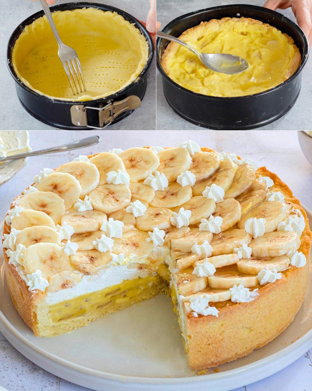 Een heerlijke en elegante bananencake, perfect als dessert of bij de thee. Met een knapperige bodem, romige vulling en frisse bananen garneer je een indrukwekkende taart die iedereen zal verrassen!