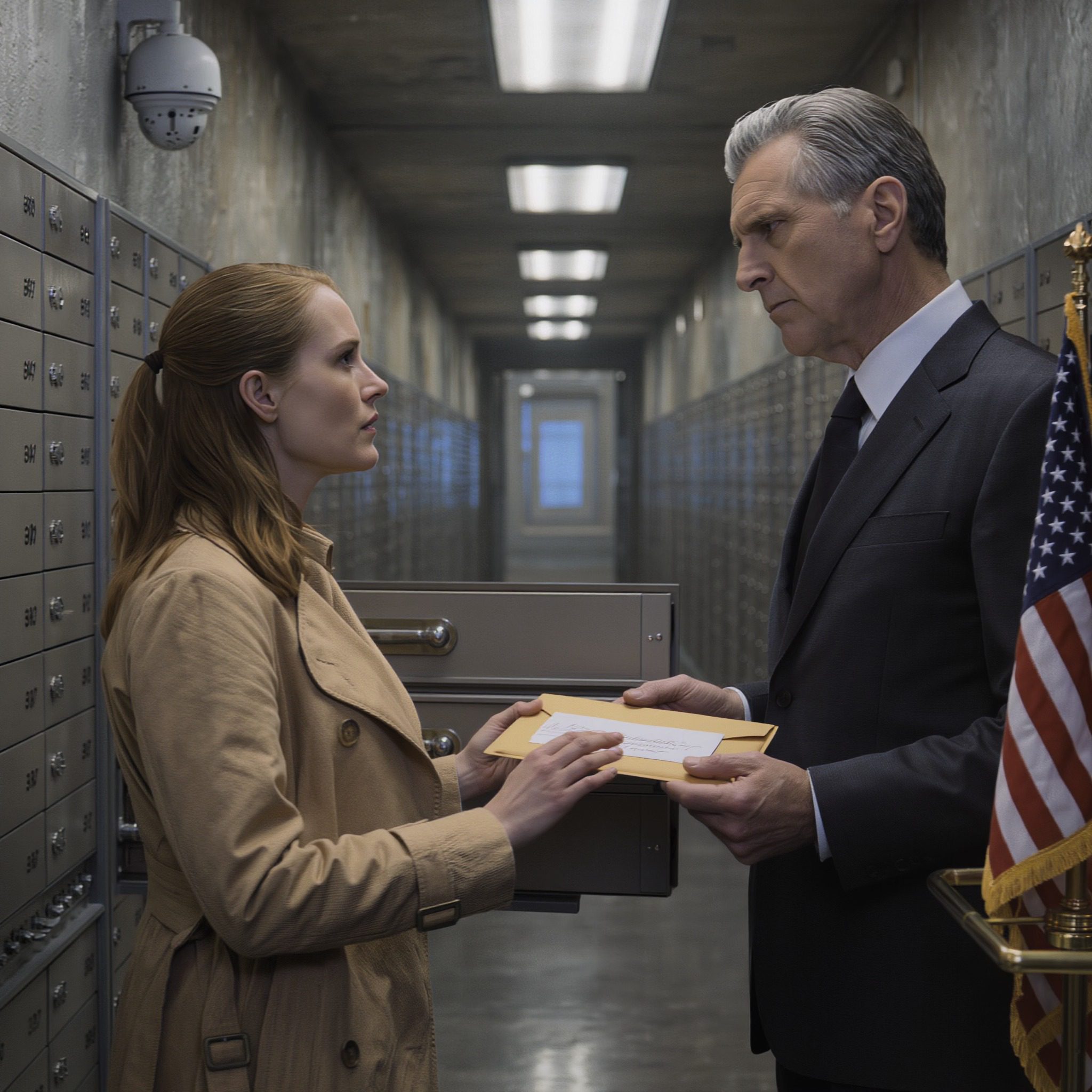 “Dit materiaal blijft hier totdat het nodig is voor de rechtszaken. Uw grootvader heeft specifiek voor onze bank gekozen vanwege onze beveiligingsprotocollen en onze ervaring met het behandelen van gevoelige juridische documenten.”