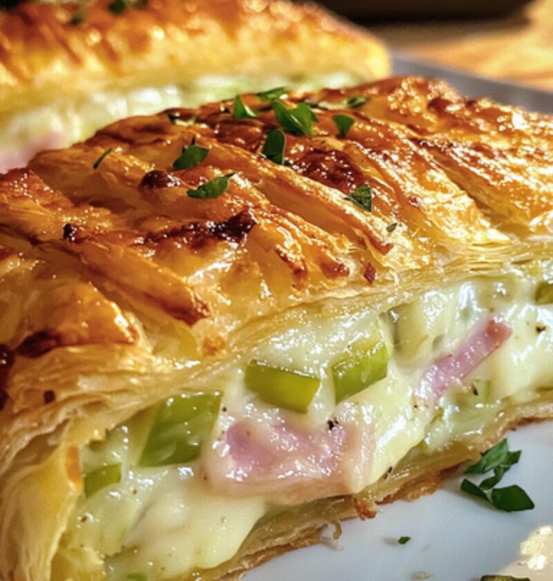 Gouden Bladerdeeg met Ham, Smeltende Prei, Comté en Romige Bechamelsaus