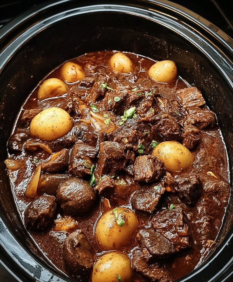 Maak kennis met de slowcooker boeuf bourguignon – een moderne variant op een tijdloos recept. Met een diepe, hartige smaak en smeltend rundvlees biedt deze versie al het comfort en de luxe van het origineel, maar dan met het gemak van een slowcooker.