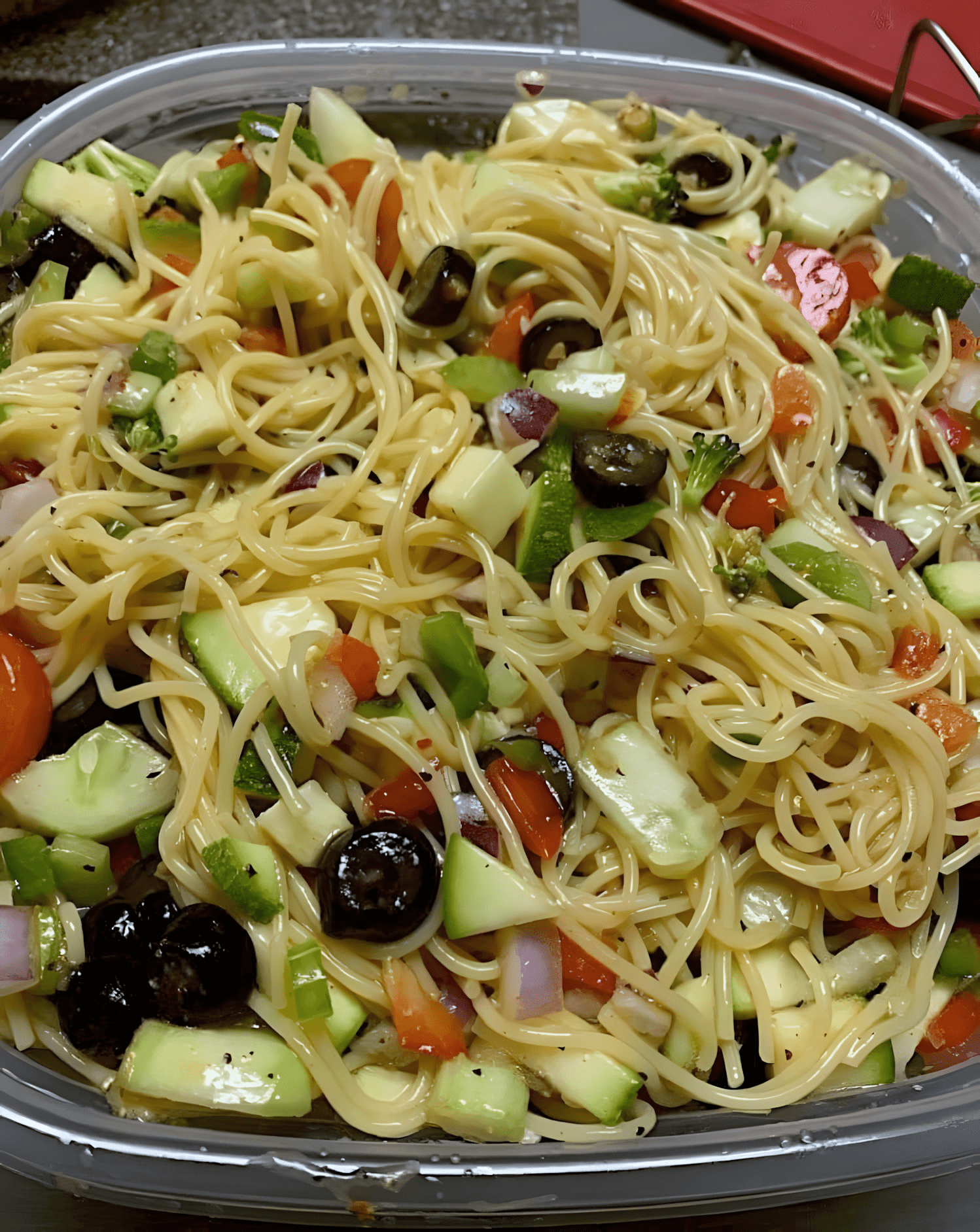 Deze California Spaghetti Salad is een frisse en kleurrijke pastasalade boordevol knapperige groenten en overgoten met een pittige Italiaanse dressing. Perfect als bijgerecht voor een zomerse BBQ, picknick of feestje! 🌞🌿