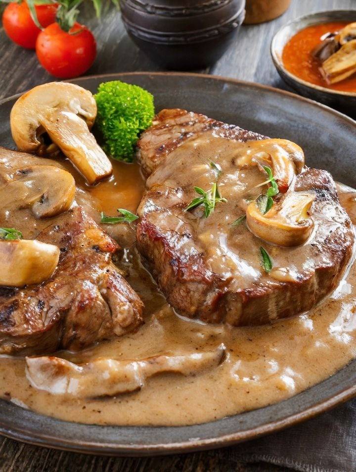 Mijn man vraagt ​​me voortdurend om dit gerecht voor hem te maken, dus ik noem dit gerecht graag ‘Husband’s Happiness’. Ingrediënten: 6 middelgrote runderrandsteaks 1 middelgrote ui, in plakjes gesneden 8 ons nieuwe champignons, fijn gesneden 3/4 bakje kippenbouillon 1/2 potje room 1/4 glas droge sherry 1/4 kopje bloem voor alle doeleinden 4 eetlepels olie … Lire plus