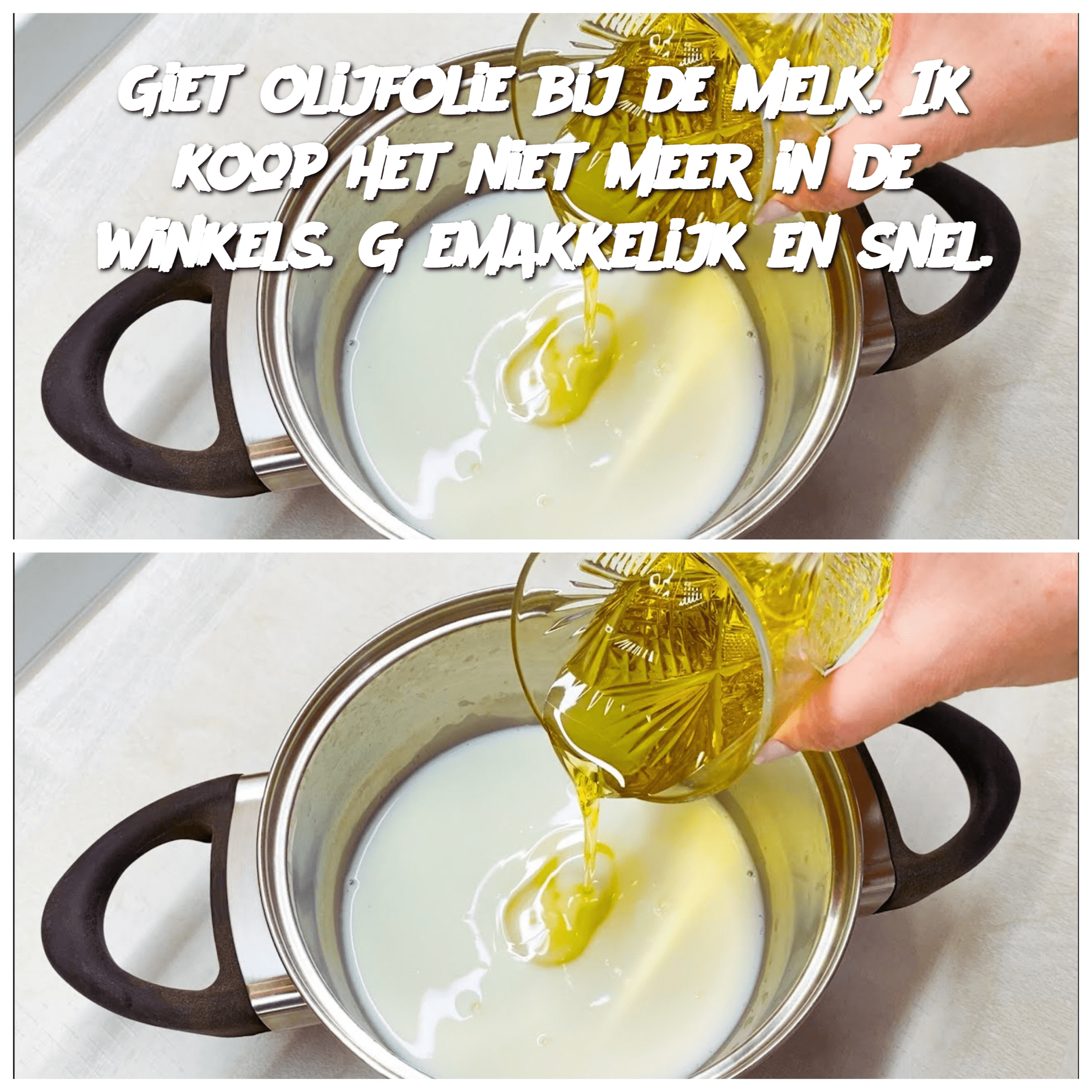 Giet olijfolie bij de melk. Ik koop het niet meer in de winkels. Gemakkelijk en snel.