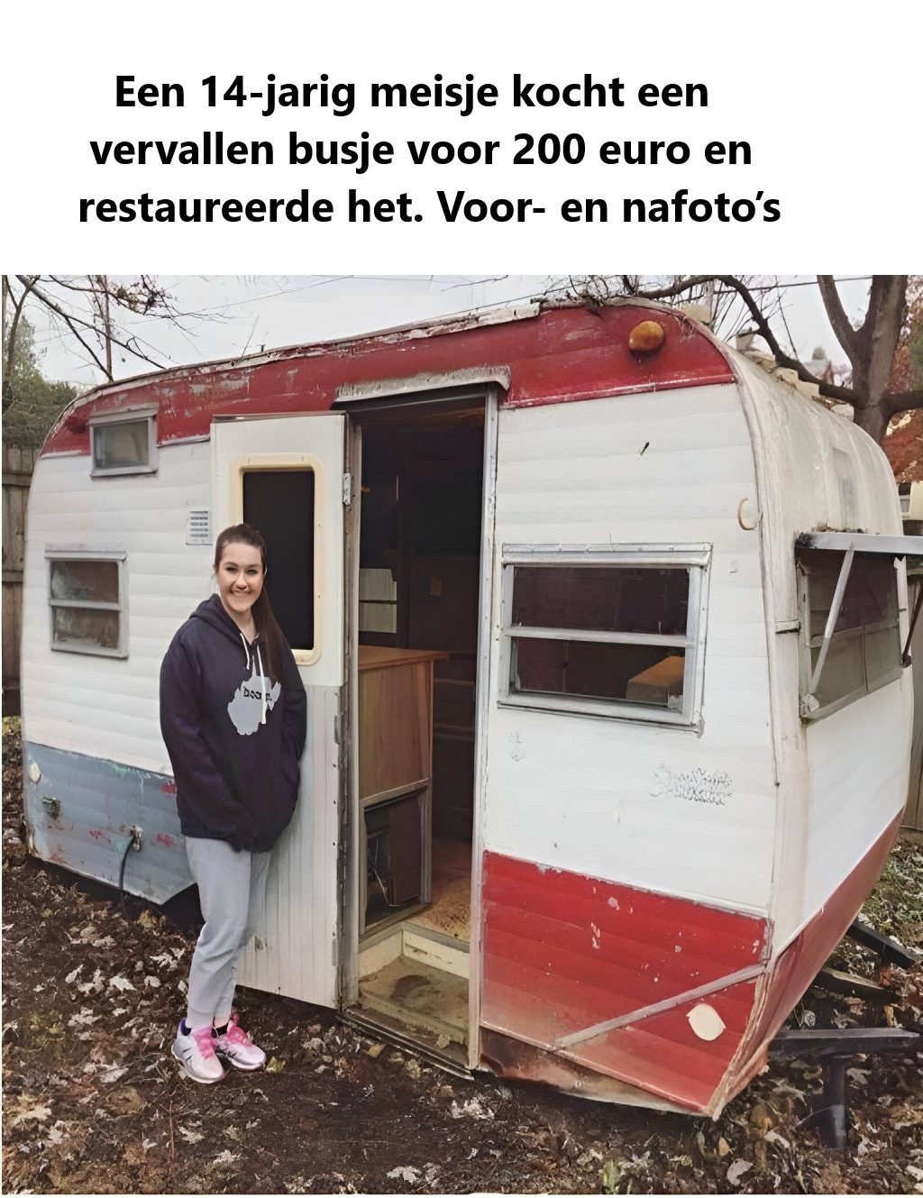 Een 14-jarig meisje kocht een vervallen busje voor 200 euro en restaureerde het. Voor- en nafoto’s