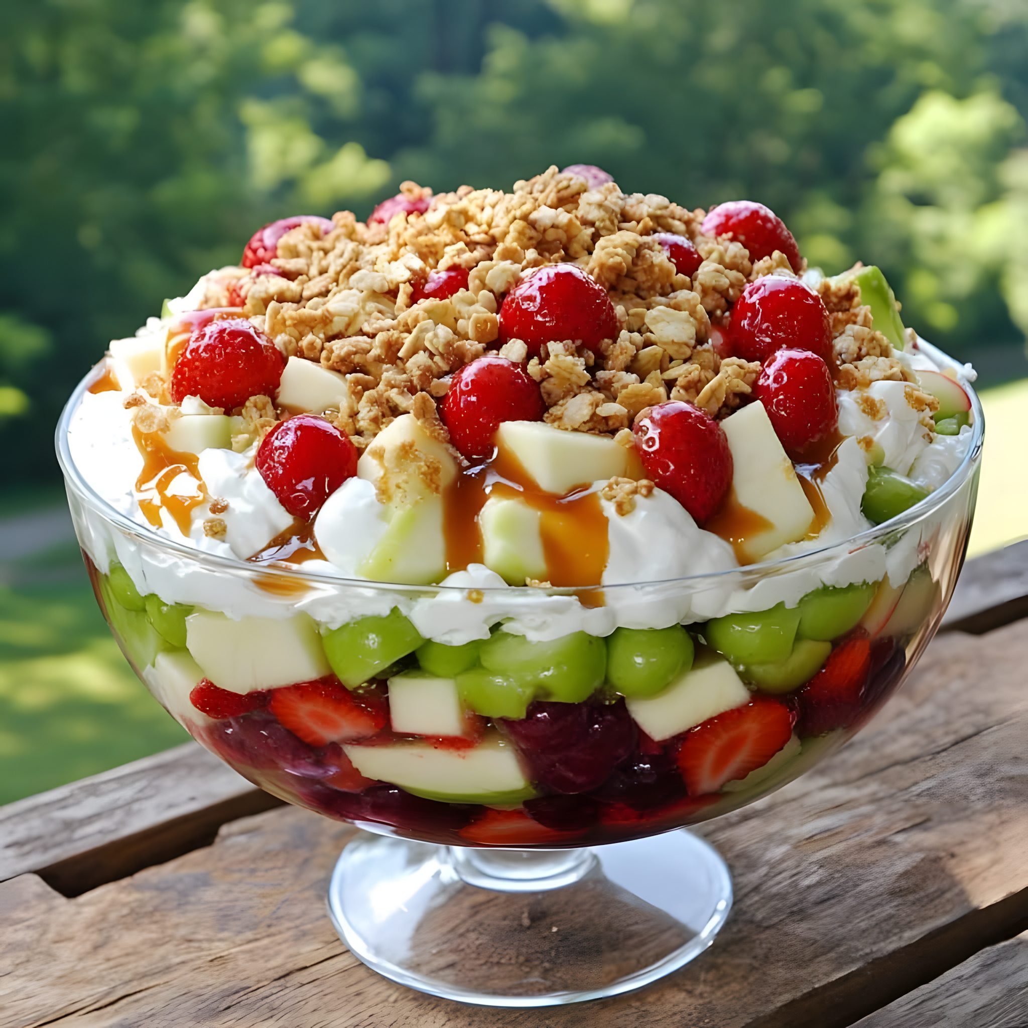 Deze Cheesecake Fruit Salad is het perfecte dessert dat vers fruit, romige cheesecake vulling en een knapperige topping combineert. Het is een verfrissende, zoete traktatie die perfect is voor zomerse bijeenkomsten, feestjes of elke gelegenheid. De romige cheesecake vulling past prachtig bij het fruit, en de granola of Graham cracker topping voegt een heerlijke crunch toe! ๐Ÿคฉ Een perfecte balans tussen zoet, romig en knapperig! ๐Ÿ‘Œ