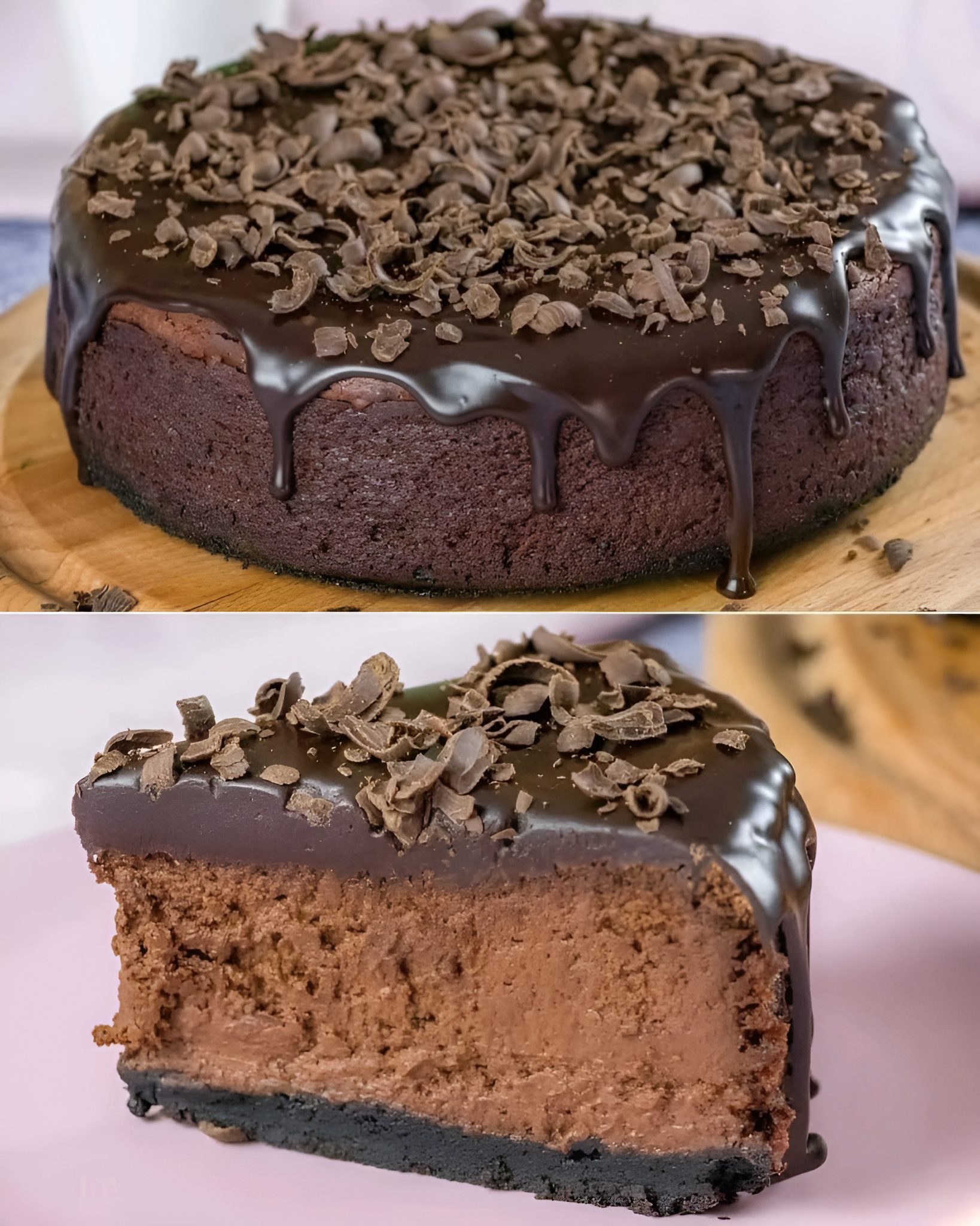Deze chocolade cheesecake is een heerlijk, rijk en verrassend dessert dat zeker indruk zal maken op iedereen. Met een knapperige bodem, een romige chocoladevulling en een fluweelzachte ganache, is deze cheesecake perfect voor speciale gelegenheden of gewoon om jezelf eens lekker te verwennen. Het is een dessert dat niet alleen fantastisch smaakt, maar er ook nog eens prachtig uitziet.