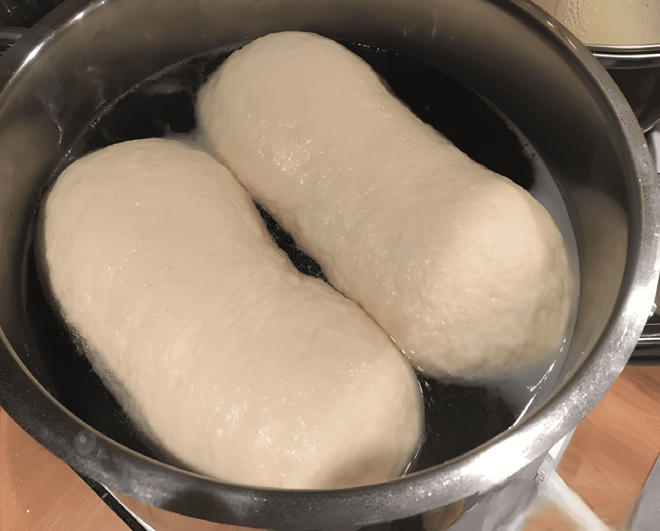 2. Verdeel het deeg na het rijzen in 4 gelijke delen, vorm er dumplings van en laat ze op het werkblad nog 20 minuten rijzen.