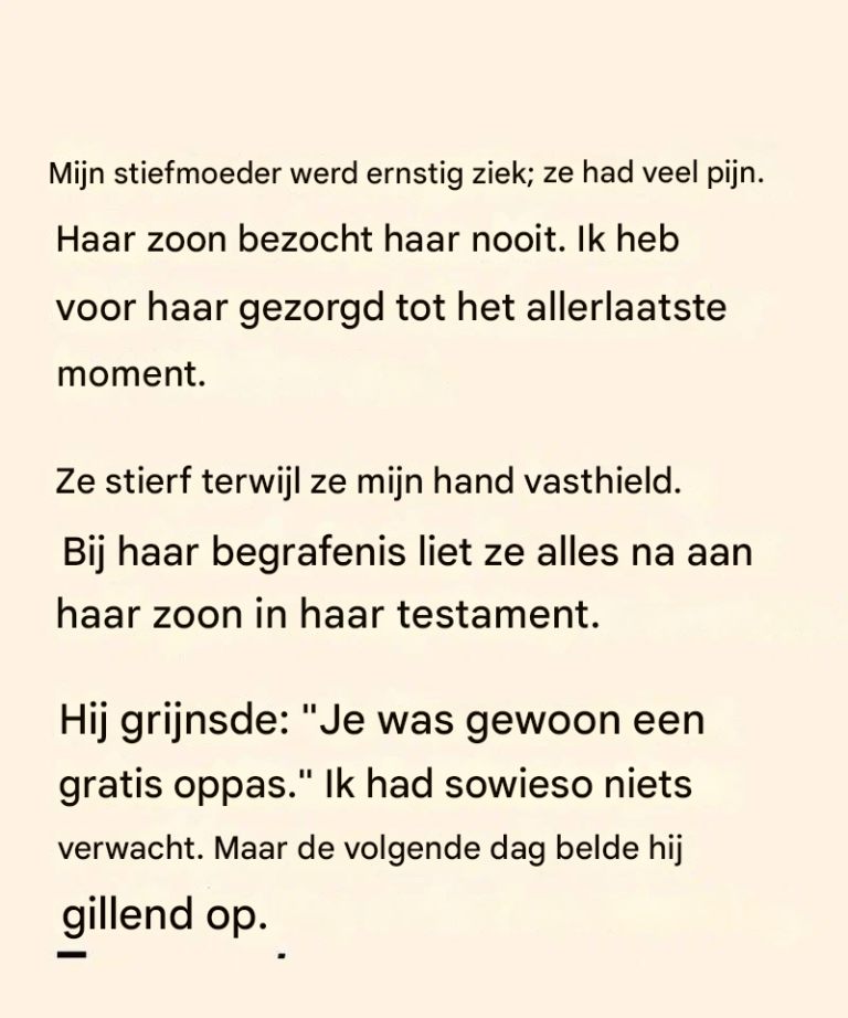 Maar de volgende dag belde haar zoon – boos, verward, bijna schreeuwend.