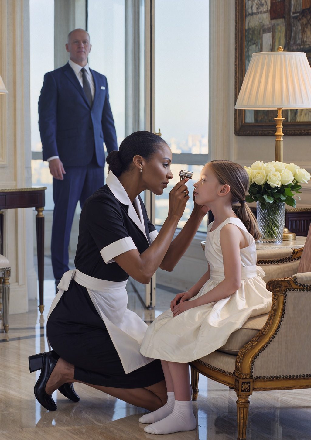 Toen kwam Elena Wu, een negenentwintigjarige weduwe die onlangs haar eigen kind had verloren. Aangenomen als inwonende verzorger, waren haar officiële taken simpel: het appartement opruimen, Victors leven organiseren en Amara gezelschap houden. Toch merkte Elena details op die anderen over het hoofd zagen. Binnen haar eerste twee weken zag ze Amara haar hoofd kantelen in de richting van het zonlicht dat door de ramen stroomde. Een keer, toen Elena per ongeluk een glas liet vallen, deinsde Amara terug, haar ogen volgden de glinstering van de scherven.