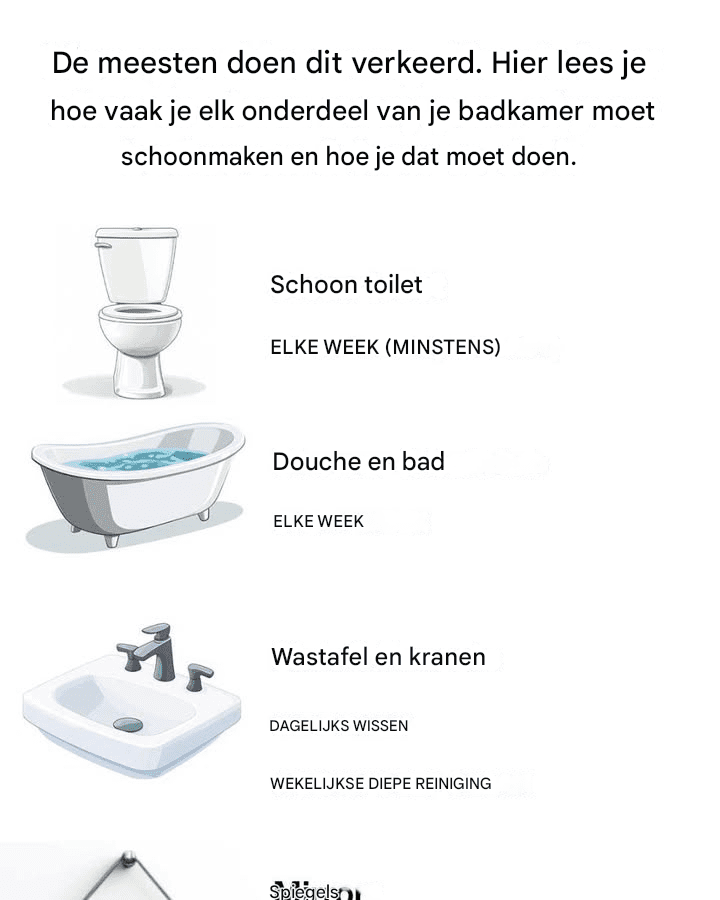 De meesten hebben dit verkeerd. Hier leest u hoe vaak u elk deel van uw badkamer moet schoonmaken en hoe u dit moet doen
