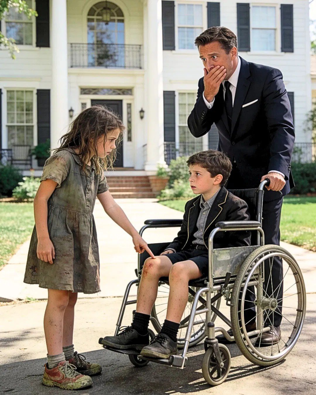 Een wrange lach ontsnapte hem. De beste specialisten ter wereld hadden gefaald – en toch beweerde dit dakloze kind dat er een wonder was gebeurd? Hij spotte, maar voordat hij weer iets kon zeggen, kwam het meisje dichter bij Evans rolstoel staan. Met verrassende zachtheid legde ze een klein handje op Evans been.