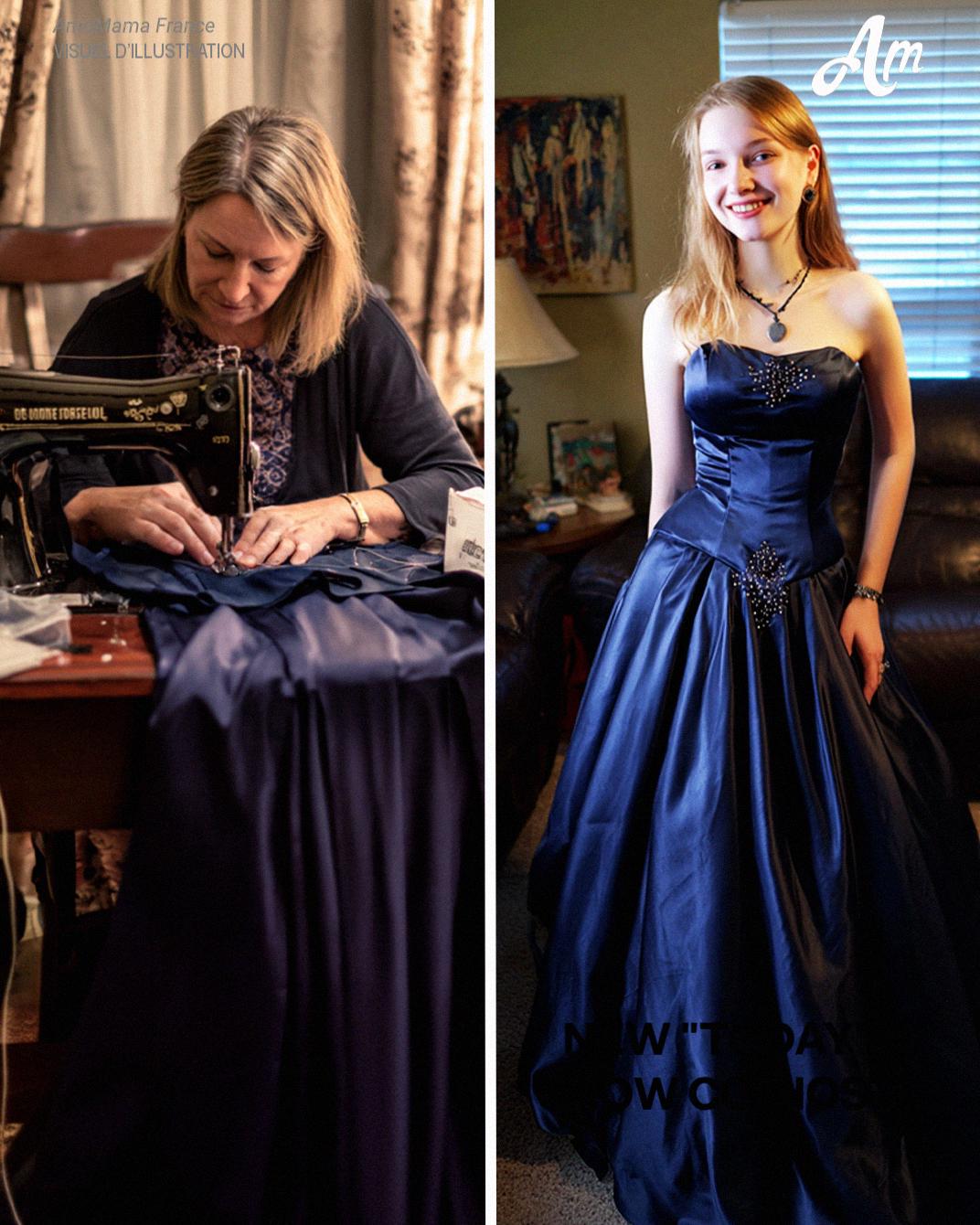 ‘Mam, kijk eens! Die zou prachtig zijn… voor mijn schoolbal!’ zei ze op een avond, terwijl ze haar telefoon voor mijn neus duwde terwijl ik bezig was met het bereiden van het avondeten. Op het scherm zag ik een satijnen jurk met delicate parels die het licht weerkaatsten als verspreide sterren. Hij was adembenemend. Maar hij kostte ook 1000 dollar… een bedrag dat ik me niet kon veroorloven.
