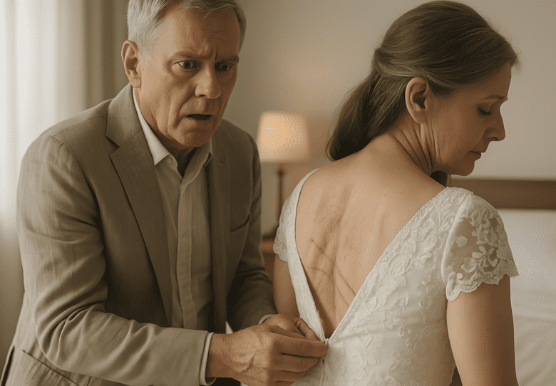 Ik verstijfde. Mijn vingers bleven hangen aan de knoopjes van mijn jurk en mijn adem stokte in mijn keel. Het zwakke lamplicht onthulde rimpels – oude, diepe littekens die haar rug, schouders en armen doorkruisten. Het waren sporen van lijden, bewijs van jaren die ik niet gekend had, jaren dat ik niet bij haar kon zijn.