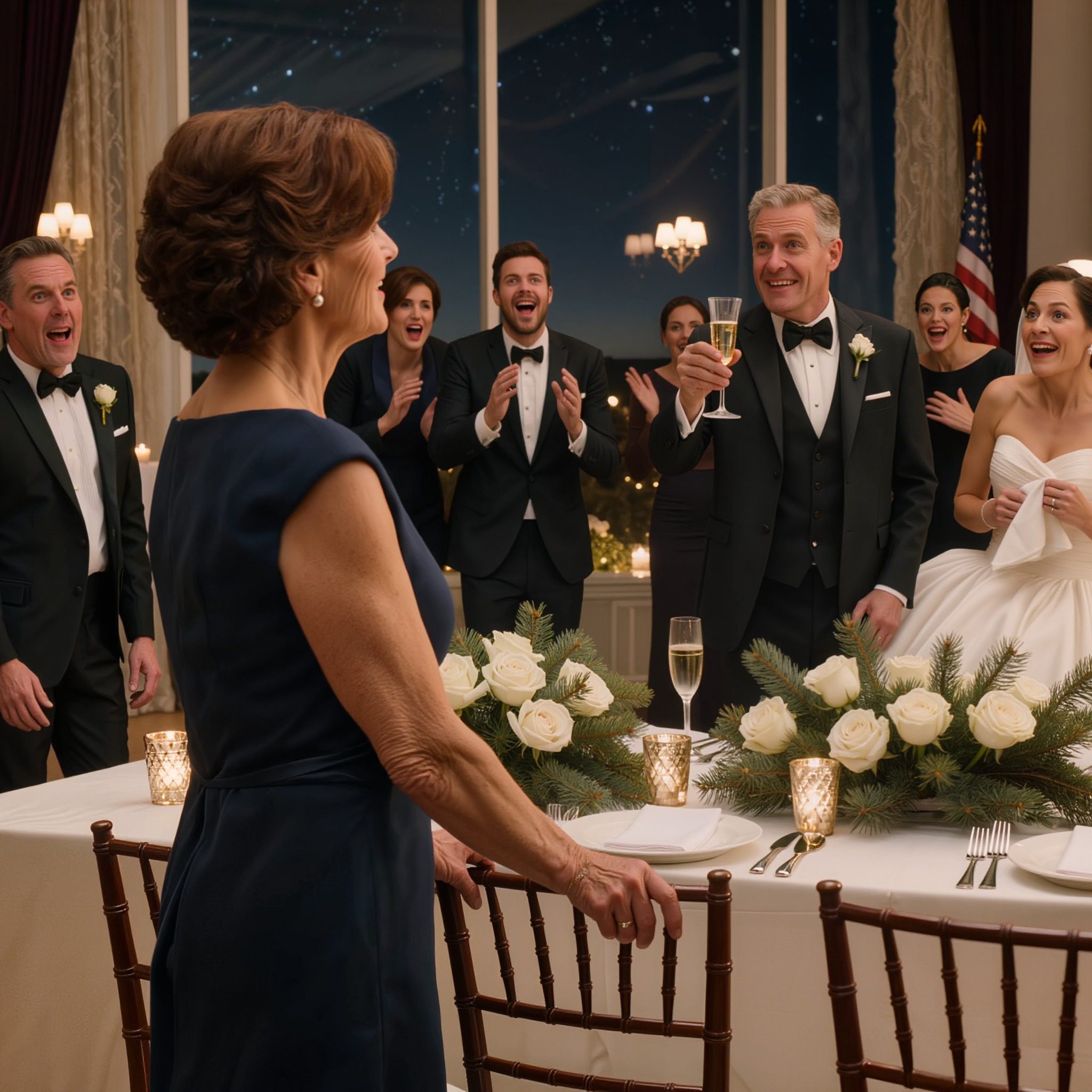 Ik zag Michelles schouders zich aanspannen aan de hoofdtafel. Ik zag haar vingers de rand vastgrijpen tot haar knokkels wit werden. Ze zat als aan de grond genageld naast George, haar hoofd licht gebogen, stille tranen liepen door haar make-up. Ze keek me niet aan. Misschien kon ze dat niet.