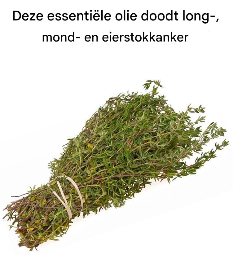 Uit onderzoek is gebleken dat tijmolie ruim 97% van de longkankercellen bij mensen doodt.