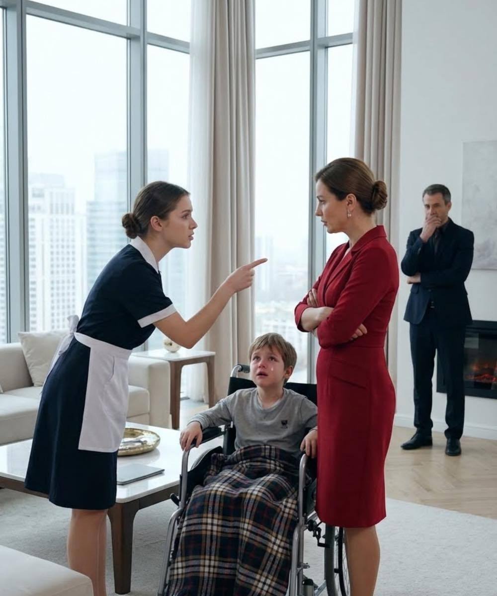De jongen klemde zijn vuisten vast aan de armleuningen van zijn rolstoel, zijn schouders trilden terwijl hij worstelde om zijn tranen te bedwingen.
