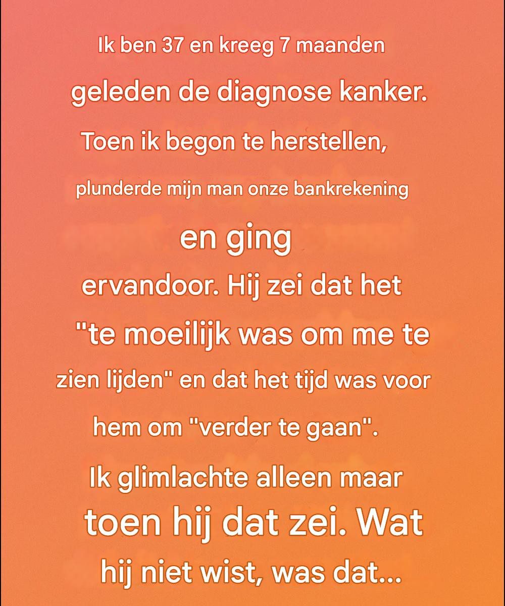 De behandelingen waren wreed, maar Elena hield vol. Langzaam, pijnlijk, begon haar lichaam te herstellen. Toen de ergste fase eindelijk voorbij was, keerde de hoop langzaam terug. Ze sprak over de mogelijkheid om ooit weer aan het werk te gaan. Over een kort weekendje weg. Over het planten van bloemen in de tuin als de lente aanbrak. Het waren geen grote dromen, maar voor haar betekenden ze overleven. Ze betekenden dat het leven nog steeds mogelijk was.