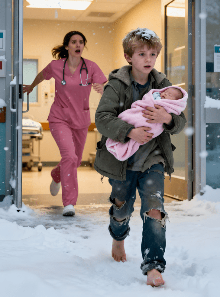 Het was net na één uur ‘s nachts toen de jonge Theo Bennett de spoedeisende hulp van het St. Catherine’s Hospital in Vermont binnenliep, met zijn kleine zusje dicht tegen zich aan, gewikkeld in een dunne, vervaagde gele deken. Een felle wintervlaag gleed achter hem door toen de deuren opengleden en langs zijn kleine, blote voetjes schampten.