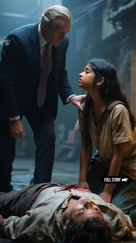Zijn witte overhemd was bespat met wat op bloed leek, en zijn hand trilde terwijl hij naar iets onzichtbaars reikte.