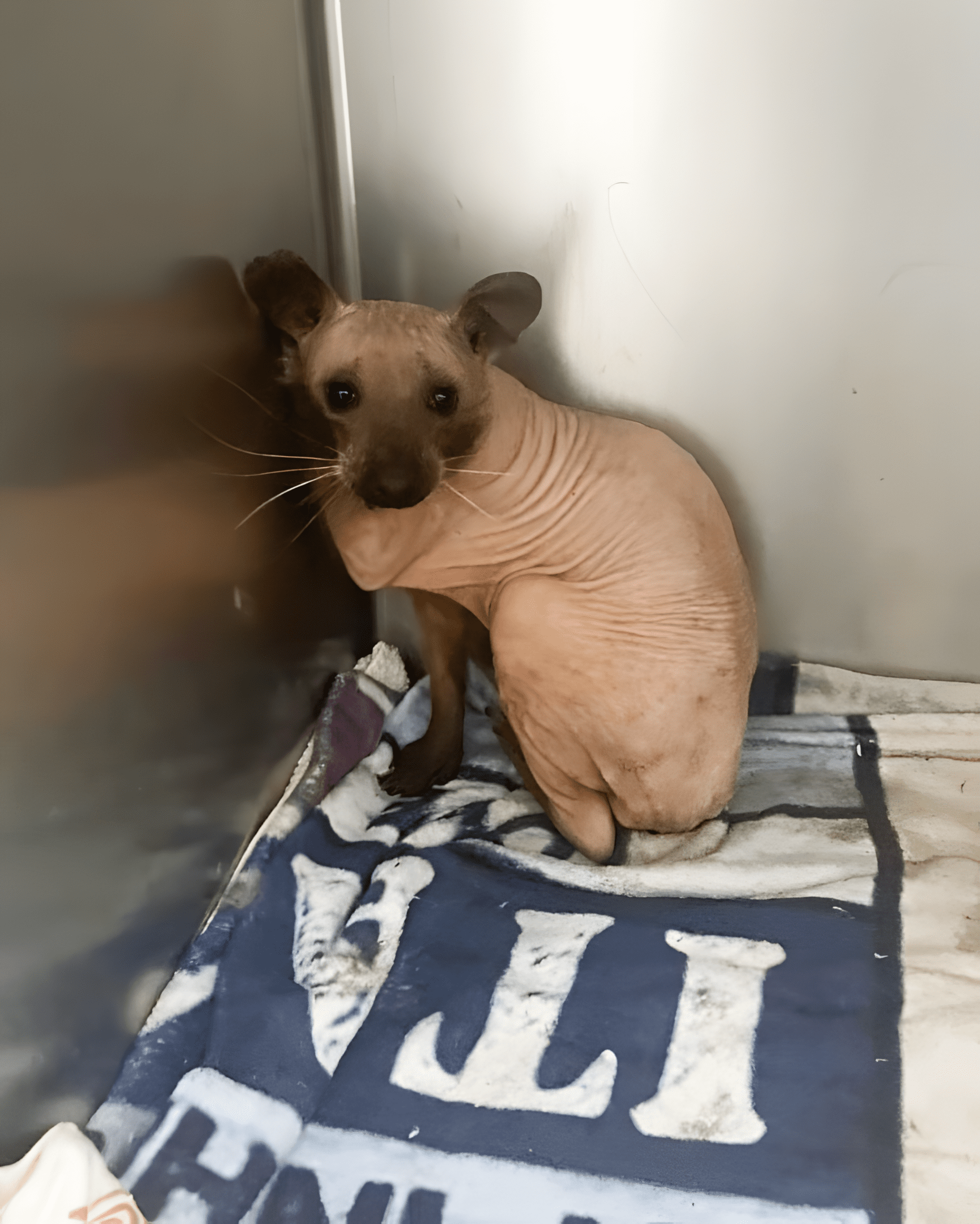 In het Canadese dorp West Arichat ontdekte een echtpaar een vreemd wezen dat lag te bibberen in hun tuin. Op het eerste gezicht lijkt het op een haarloze Sphynx kat , maar het is eigenlijk een haarloze wasbeer — een fascinerende zeldzaamheid in het dierenrijk.