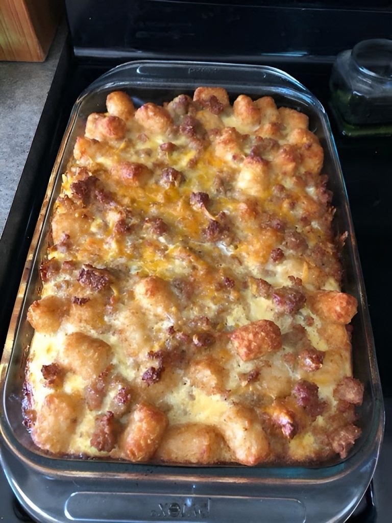 Een hartige en eenvoudige ontbijtschotel die Tater Tots, eieren, worst en kaas combineert – ideaal voor een gezellige ochtend of een brunch met familie en vrienden.
