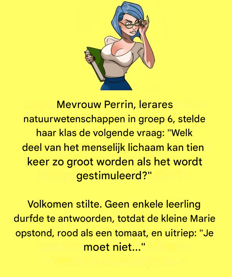 Die ochtend begint het verloop van **life sciences** zoals gewoonlijk. Om haar studenten te boeien, stelt de leraar een fysiologisch raadsel voor: *« Welk orgaan kan haar grootte vermenigvuldigen onder het effect van stimulatie? “De vraag, hoe klassiek ook, stort de klas in een geïntrigeerde stilte… totdat een tienermeisje de vlieg neemt.