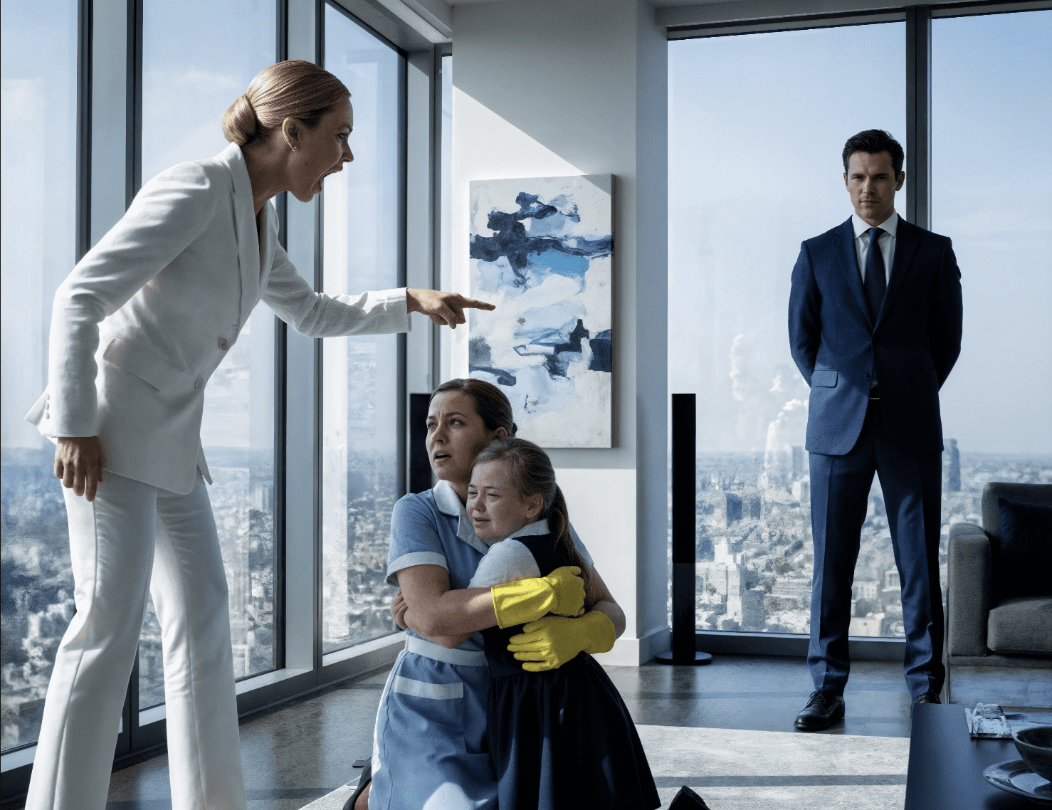 ‘Jij bent vast de nieuwe huishoudster,’ zei Verónica, terwijl ze een plukje haar terugduwde en probeerde kalm te klinken. ‘Perfect, ik moet er even tussenuit. De kleine heeft een driftbui. Als ze gekalmeerd is, kun je beginnen. Het gaat goed met haar, ja hoor. Ze doet zoals altijd een beetje dramatisch.’