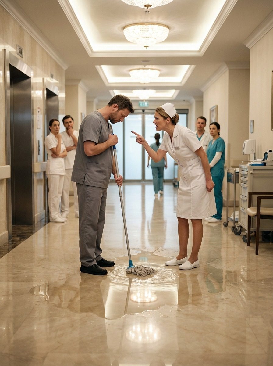 Sommige verpleegkundigen maakten openlijk de spot met de schoonmakers. Verpleegkundige Fallon Drake – onberispelijk uniform, scherpe tong – behandelde het schoonmaakpersoneel alsof ze onzichtbaar meubilair waren. Op de gangen snauwde ze: « Kijk waar je loopt, » en in de kantine lachte ze om « mensen zonder ambitie » alsof waardigheid een salarisschaal had. Een oudere schoonmaker, Omar , waarschuwde Caleb zachtjes: « Neem het niet persoonlijk. Sommige mensen dragen arrogantie als een ereteken. »