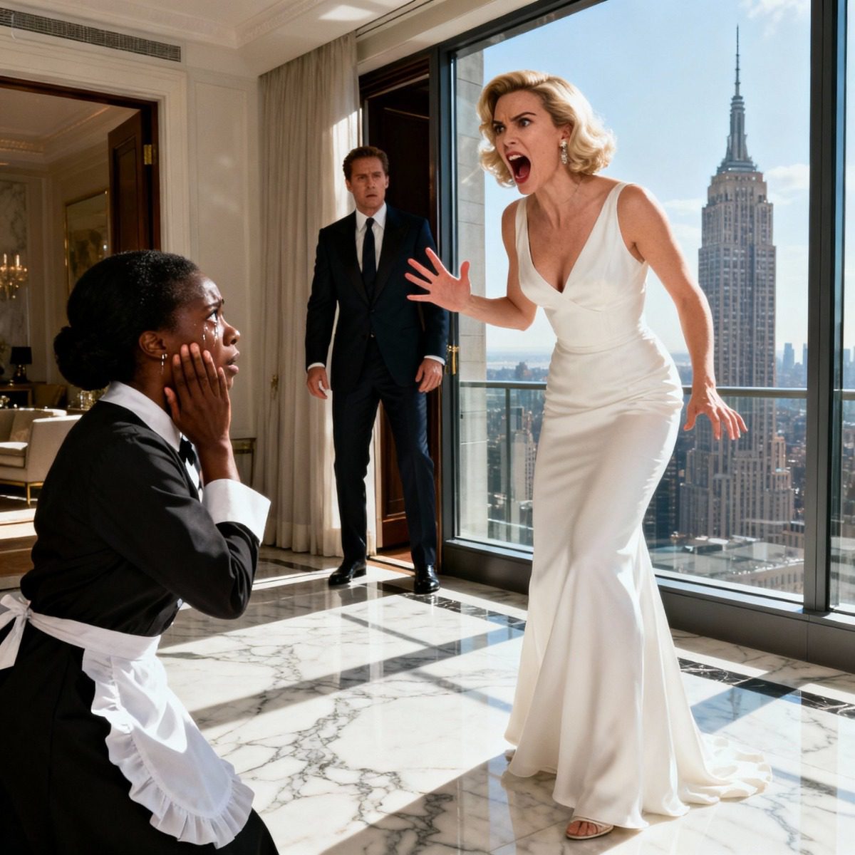 In de keuken  was Clarissa , een arme zwarte dienstmeid die al zes maanden voor Derek werkte, rustig bezig met het schikken van de borden toen zijn verloofde,  Vanessa , binnenstormde. Vanessa kneep haar ogen samen toen ze Clarissa aankeek. « Echt? Is dit de manier waarop je het eten van mijn toekomstige echtgenoot serveert? » snauwde ze, terwijl ze lachend het dienblad pakte. « Knoei je altijd, of is dit een uitzondering? »