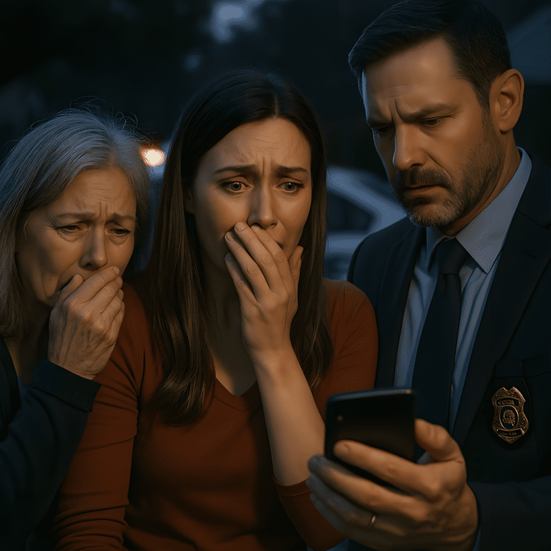 Toen ze de rustige straat van haar moeder insloeg, werden Emma’s grootste angsten werkelijkheid. Rode en blauwe zwaailichten flitsten over de huizen. Politieauto’s stonden langs de stoeprand. Buren stonden buiten in stille verwarring.