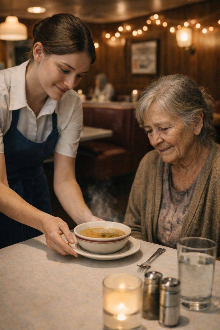 De geur van versgezette koffie hing in de lucht als een stille belofte van warmte. Borden kletterden achter de toonbank. Spek sistte op de grill terwijl eieren kraakten en sisten tegen het hete oppervlak.