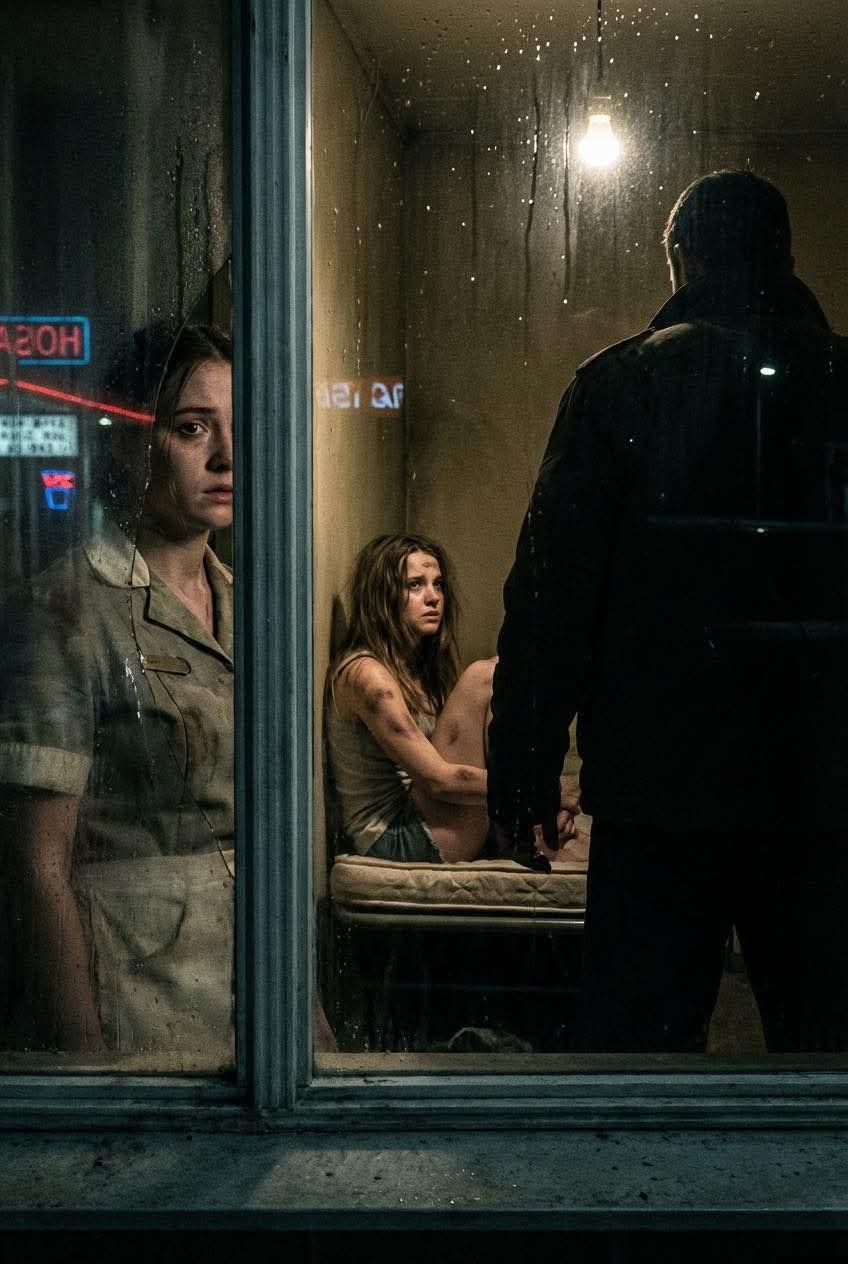 Het meisje zat op de rand van het bed, haar schouders trillend terwijl stille tranen over haar gezicht stroomden. Een paarse blauwe plek ontsierde haar arm als een afschuwelijke bekentenis. Victor torende boven haar uit, greep haar pols vast en fluisterde met een stem zo koud dat Nora er rillingen van kreeg, zelfs door het glas heen. Ze kon niet alle woorden verstaan, maar ze hoorde angst, de rauwe, verstikkende angst die kinderen levend begraaft lang voordat hun lichaam sterft.