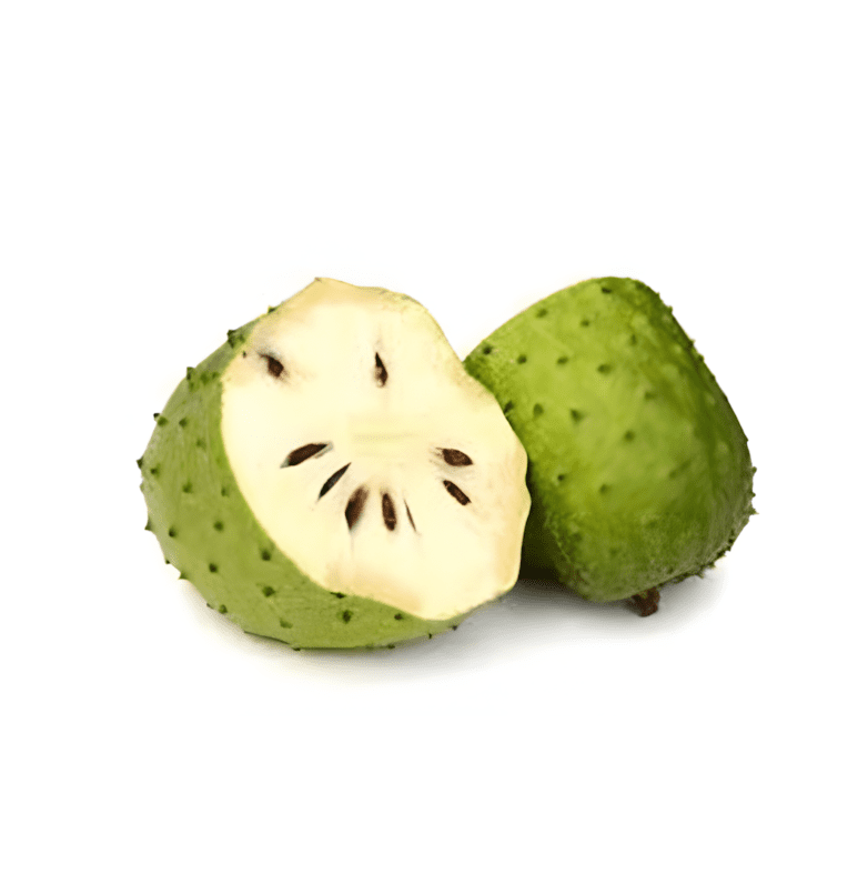 Deze vrucht staat bekend als de custardappel, Graviola of Zuurzak, en is een tropische vrucht met een heerlijke smaak die de smaken van aardbei en ananas combineert.