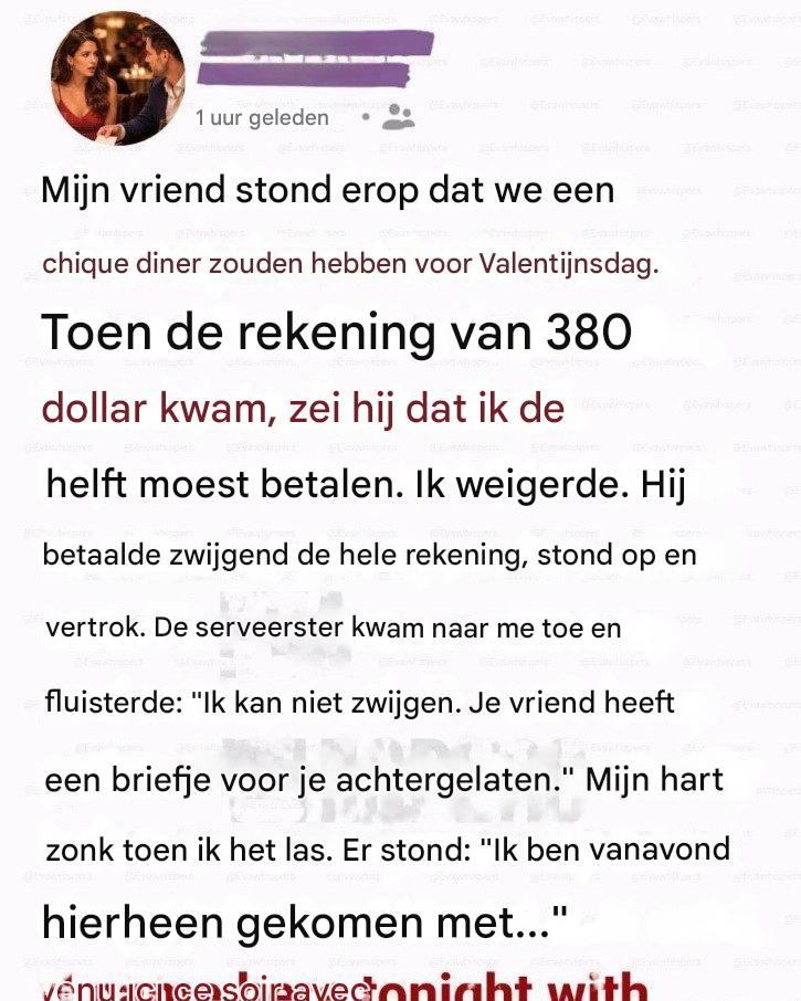 Soms liggen de meest onthullende momenten in een relatie verborgen achter een ogenschijnlijk gewone façade. Voor één vrouw veranderde wat de meest romantische avond van haar leven had moeten zijn in een ontdekking die alles zou veranderen.