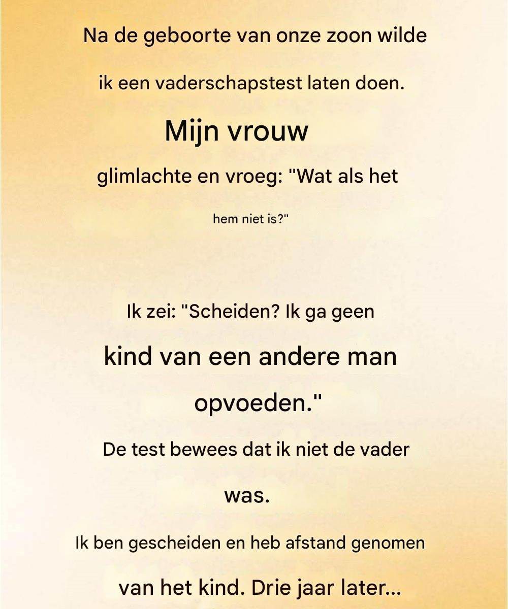 Vijf dagen. Zo lang duurde het voordat de uitslag bekend was. Vijf dagen als vreemden in hetzelfde huis. Emma zorgde met robotachtige efficiëntie voor ons dochtertje en sprak alleen als het nodig was. Ik zei tegen mezelf dat haar stilte schuld betekende. Dat ze zich voorbereidde op de onthulling. Dat ik gelijk had gehad.